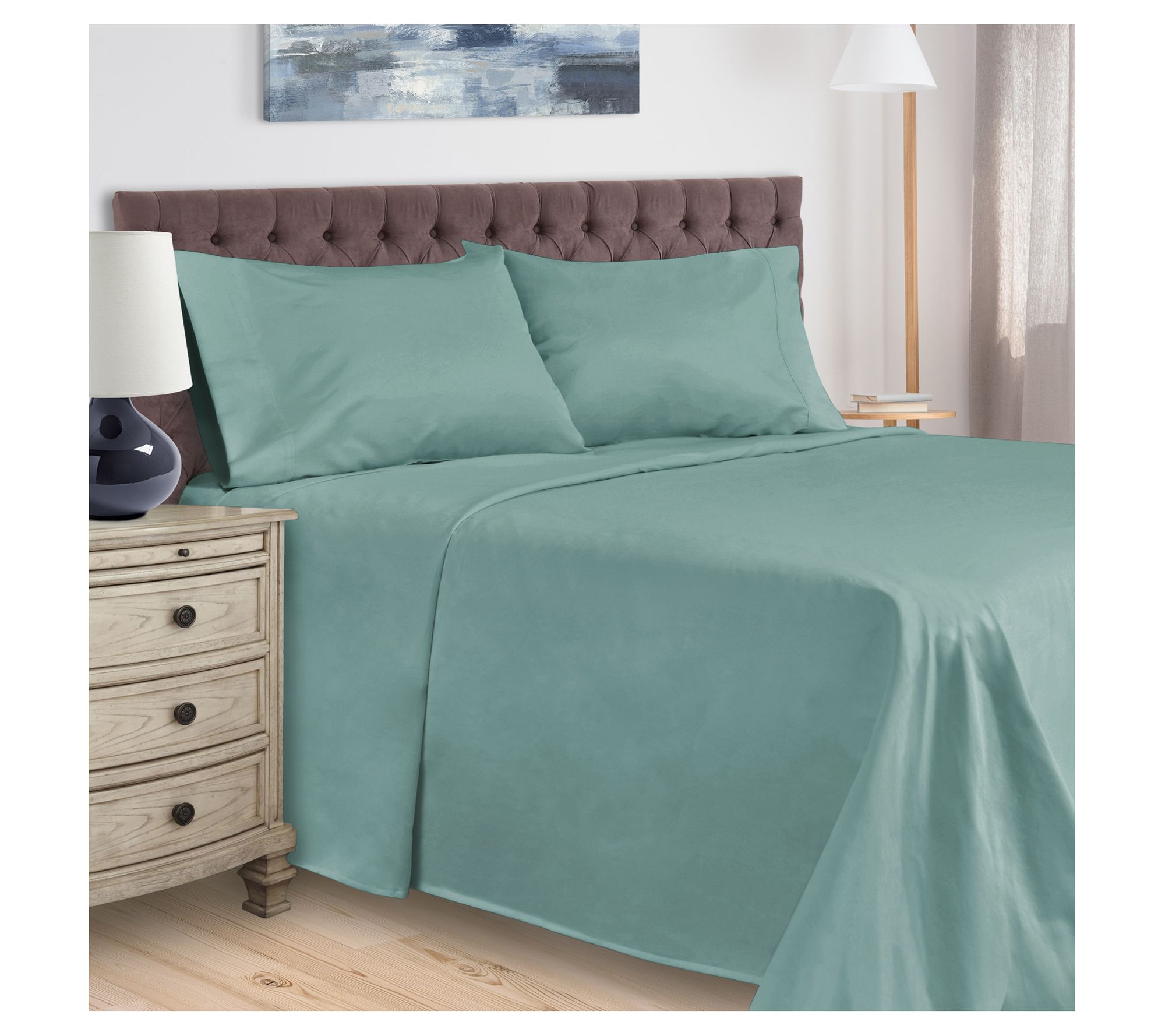 Includes one flat sheet, one fitted sheet, and two pillowcases