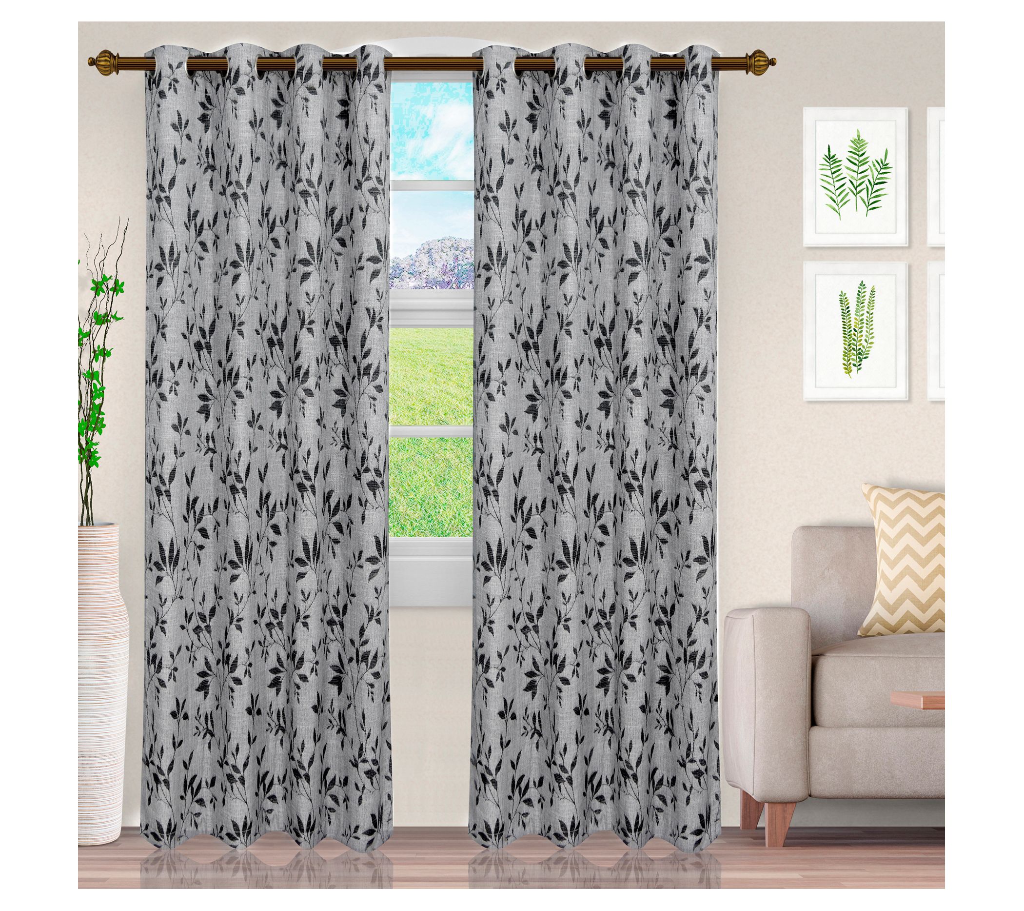 Superior Ghera Vine Grommet Curtain, 2 Panel Set, 52 x 84