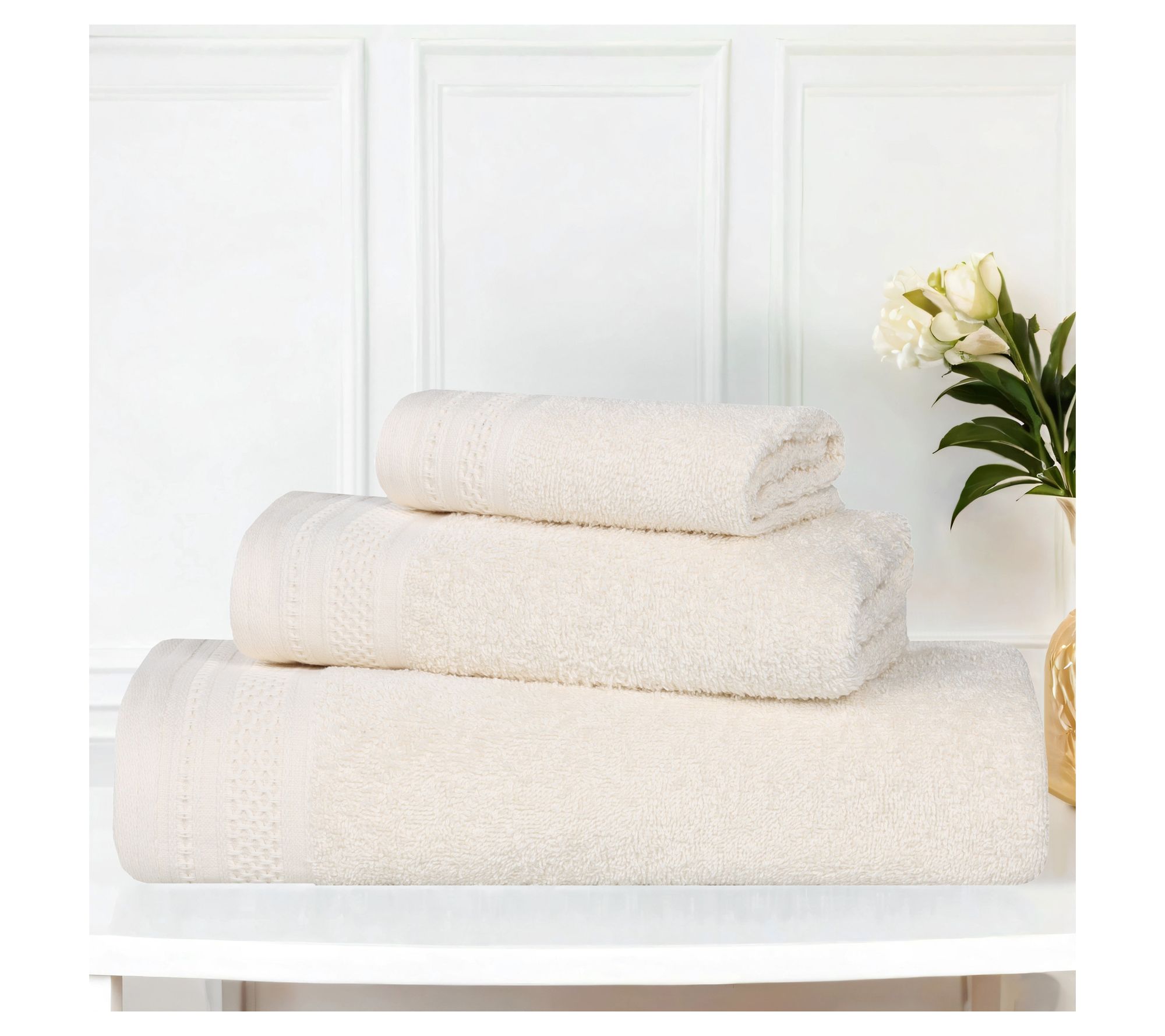 • Includes one bath towel, one hand towel, and one face towel/washcloth