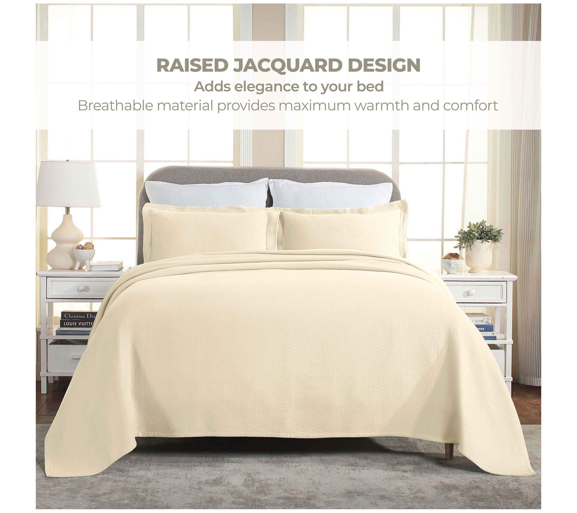 The understated elegance of this Jacquard Matelasse Diamond Solitaire bedspread set gives your bedroom a sophisticated look while keeping you cozy and warm. From Superior.