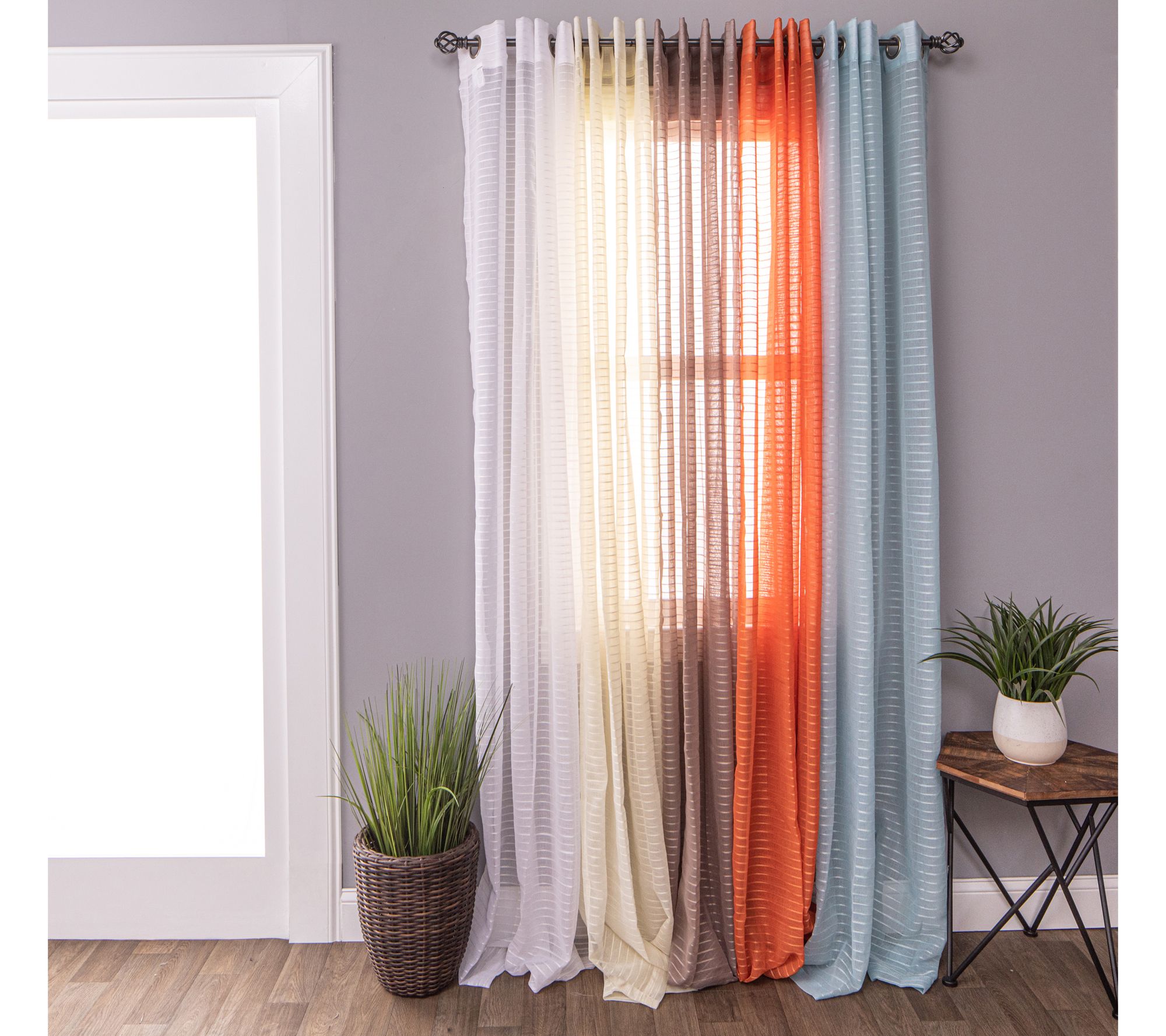 Superior Jaxon Stripe Sheer Grommet Curtain 2 Pnels, 52x108