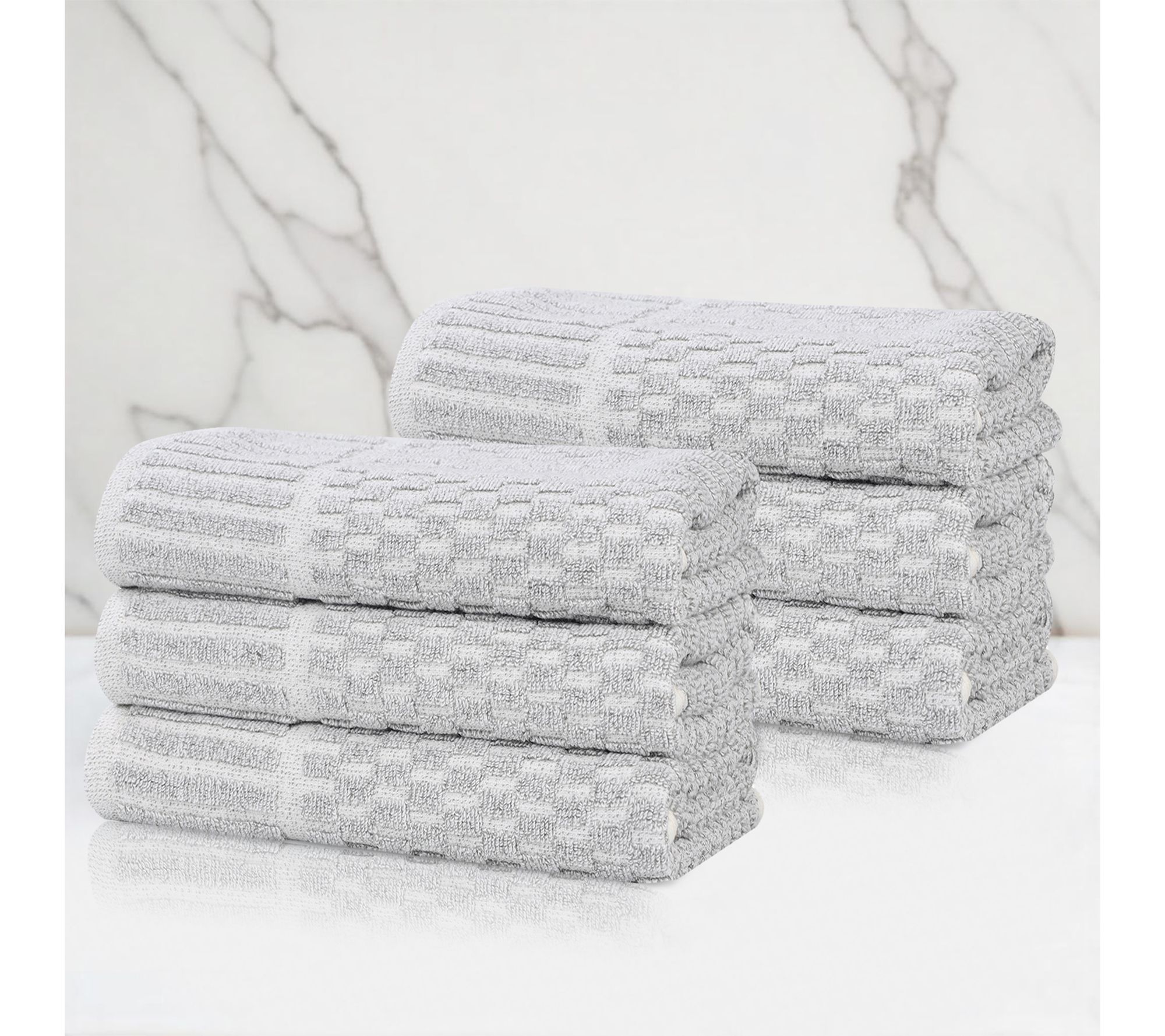 Upgrade your bathroom with this versatile 6-piece hand towel set, perfect for all decor styles. Crafted from a cotton blend with a chic melange effect, these towels offer both superior absorbency and a stylish look. From Superior.