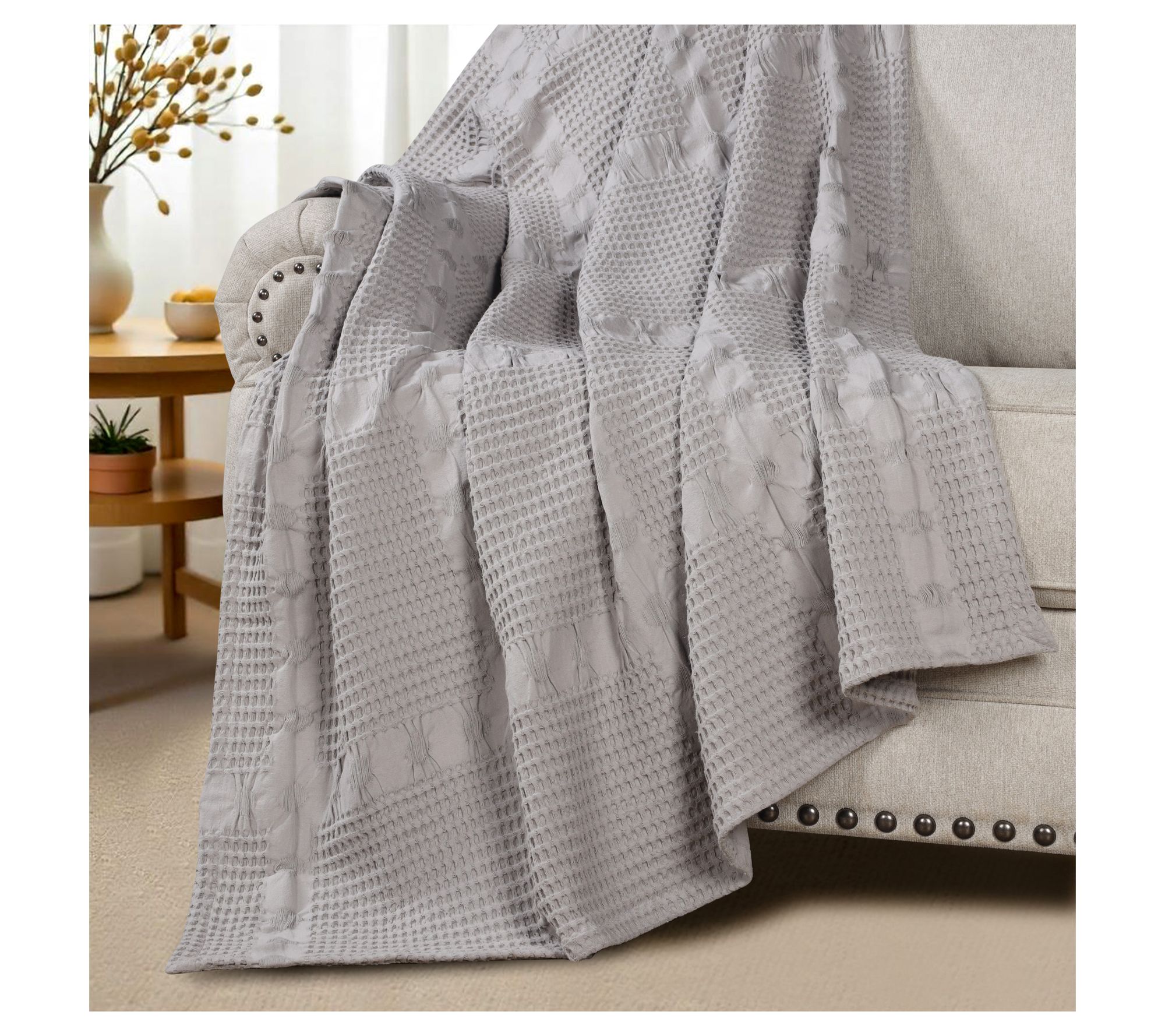 Superior Mai Geometric Waffle Cotton Blanket, Throw