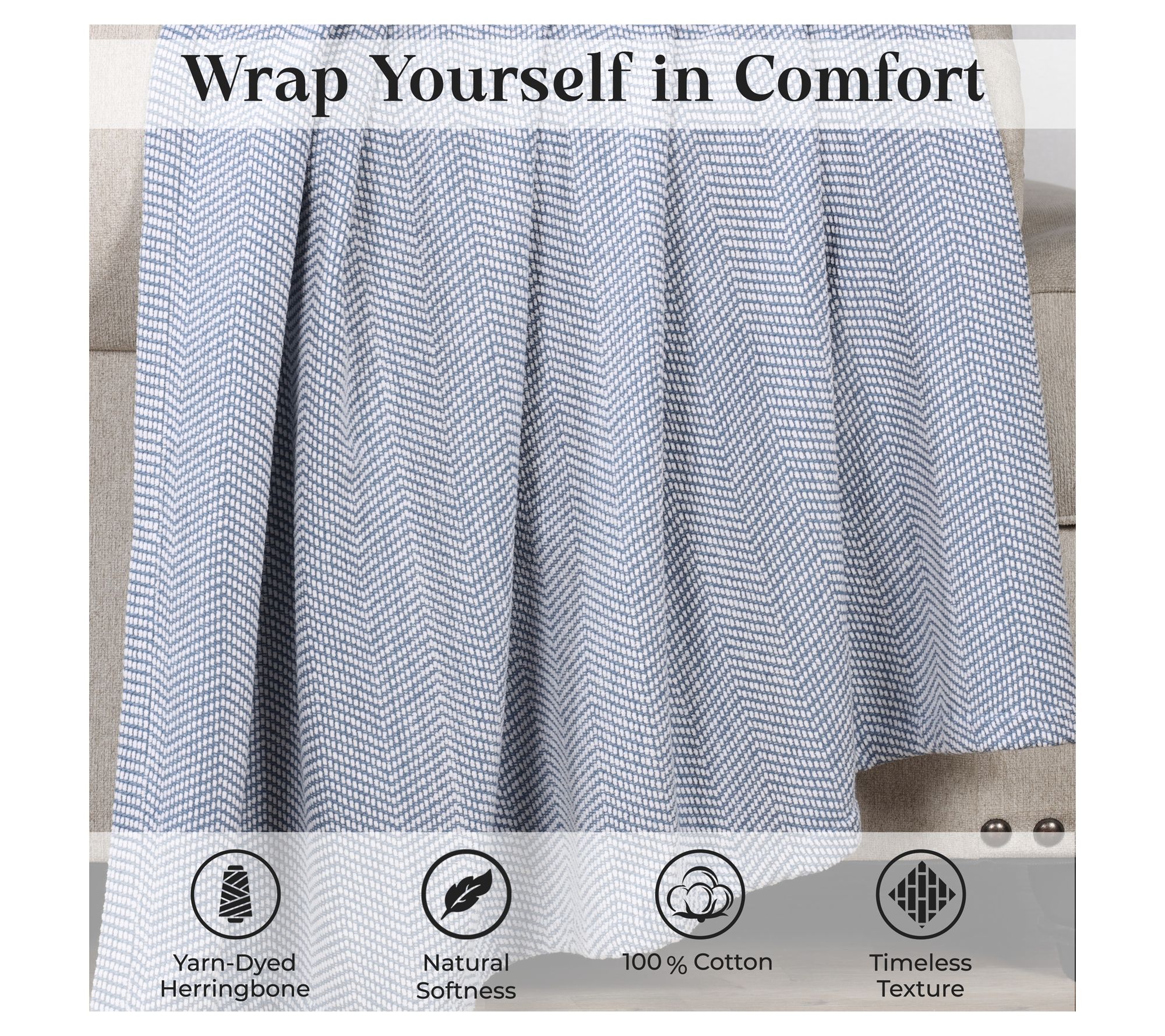 Superior Maya Chenille Herringbone Cotton Blanket, Full Queen