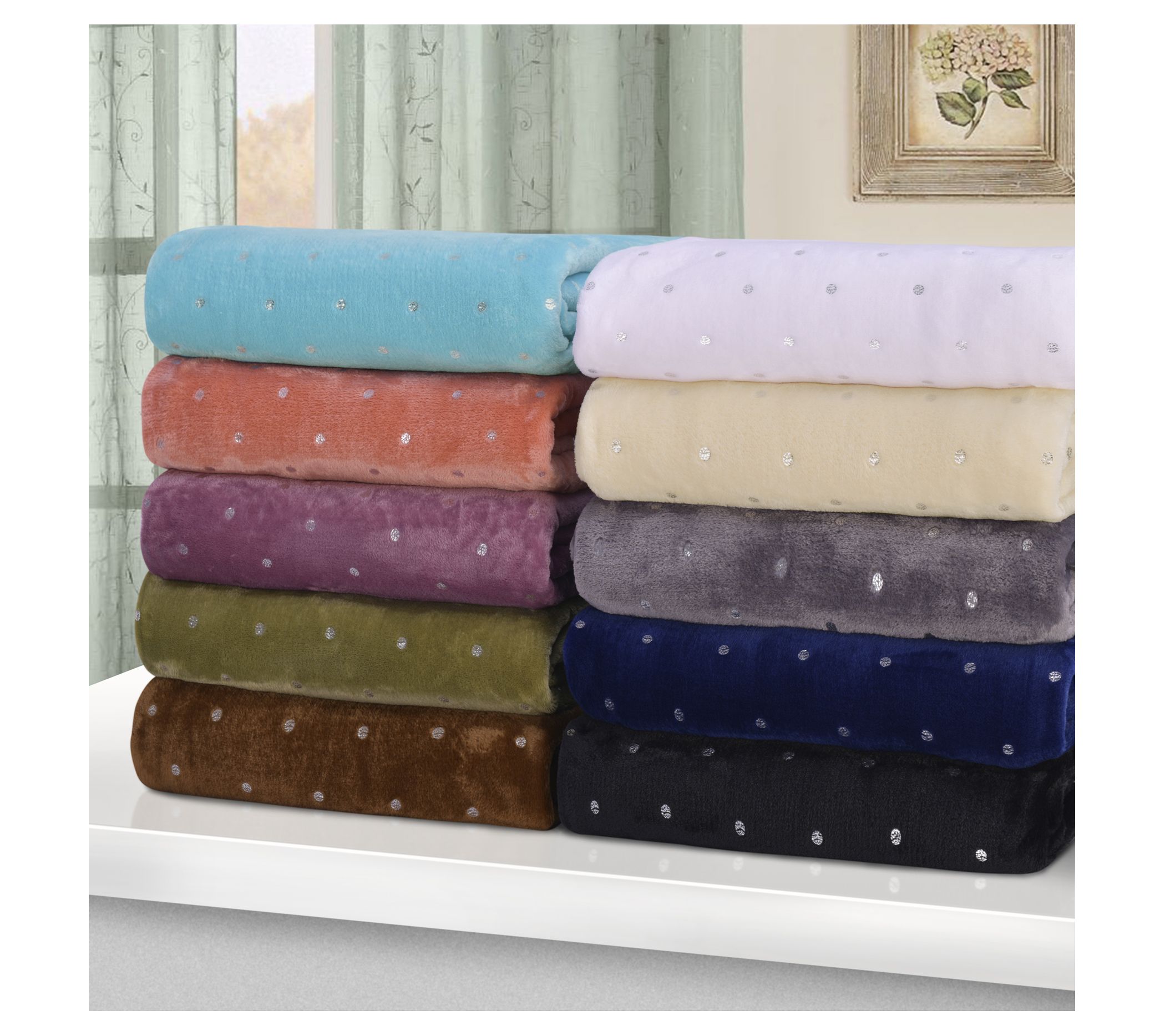Superior Metallic Polka Dot Ultra-Plush Fleecerow Blanket