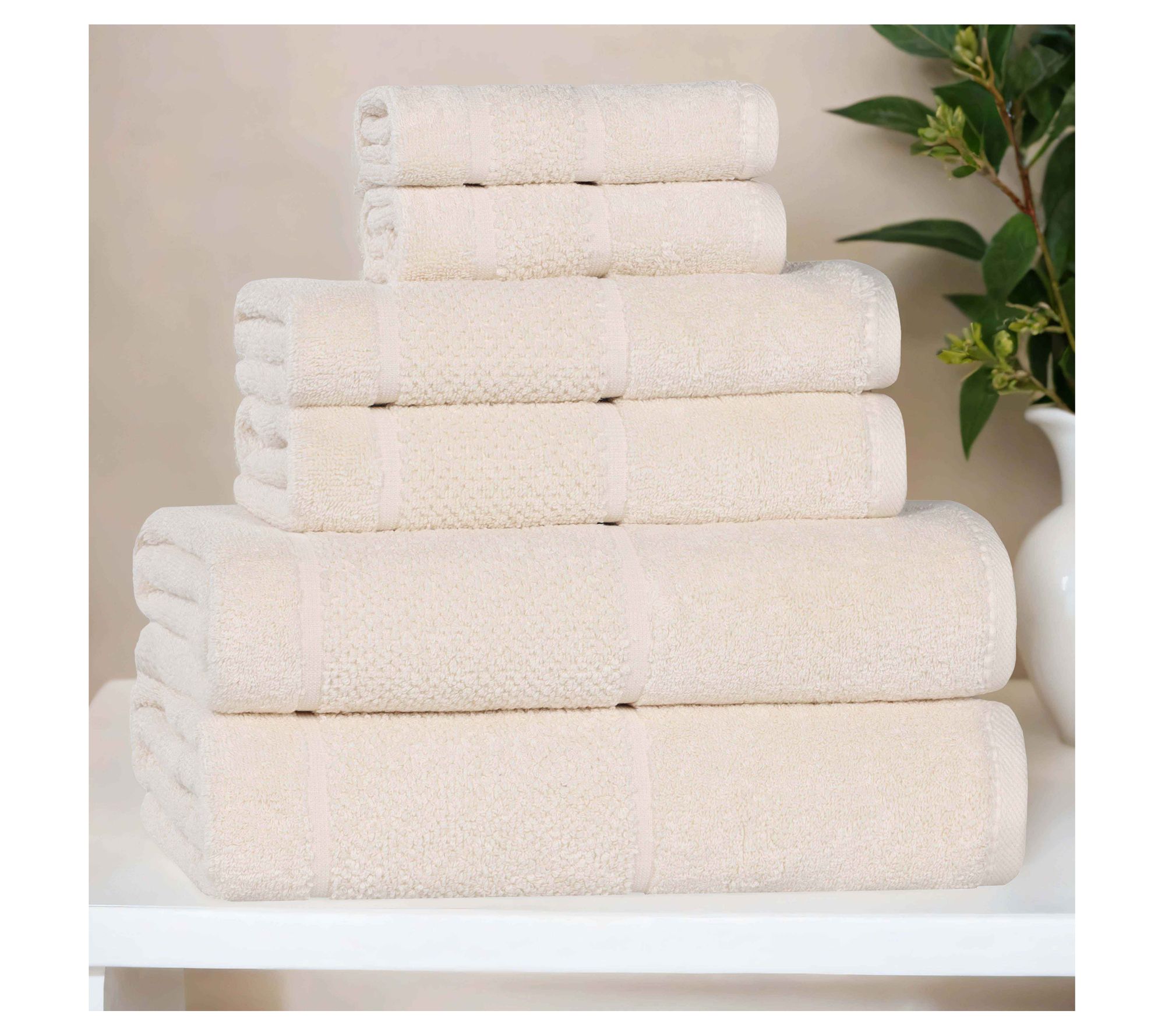 • Includes two bath towels, two hand towels, and two face towels/washcloths