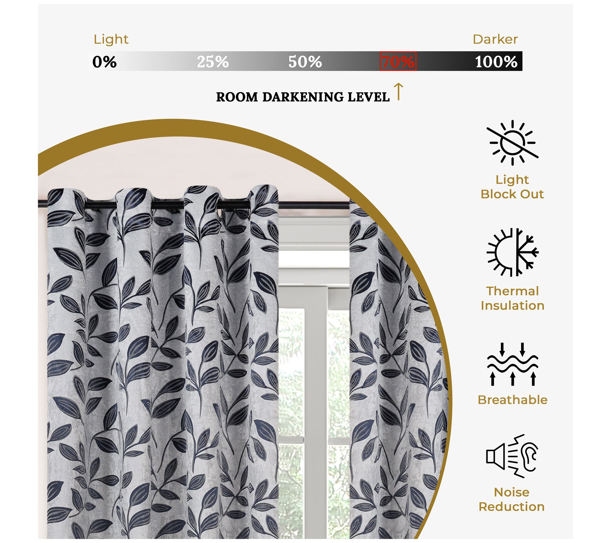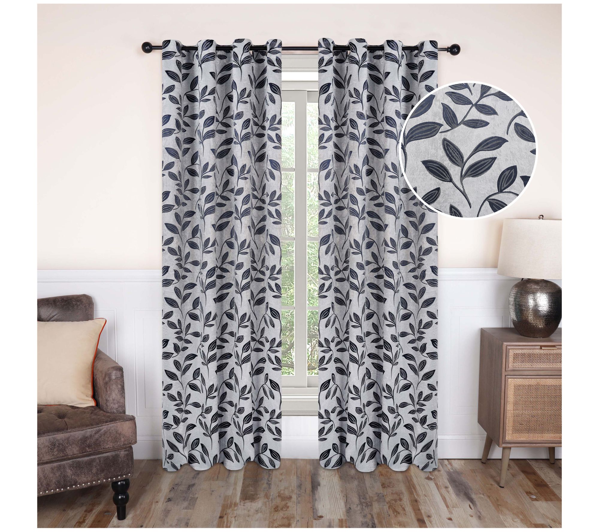 Superior Modern Leaves Blackout Curtain Panel Set, 52X120