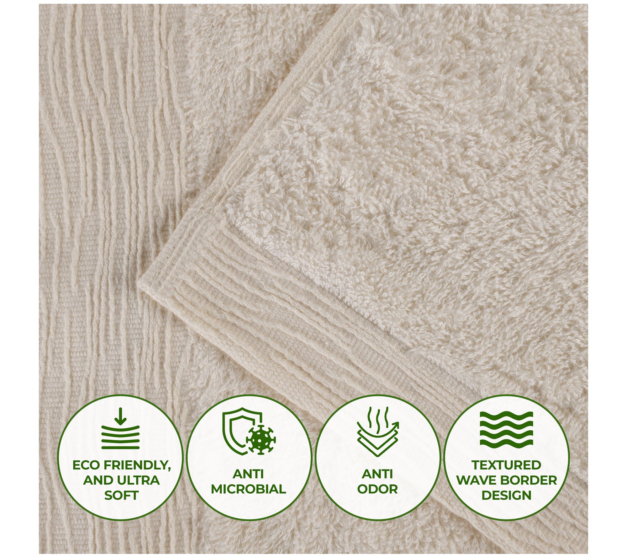 • Secure hemmed edges; textured wave border