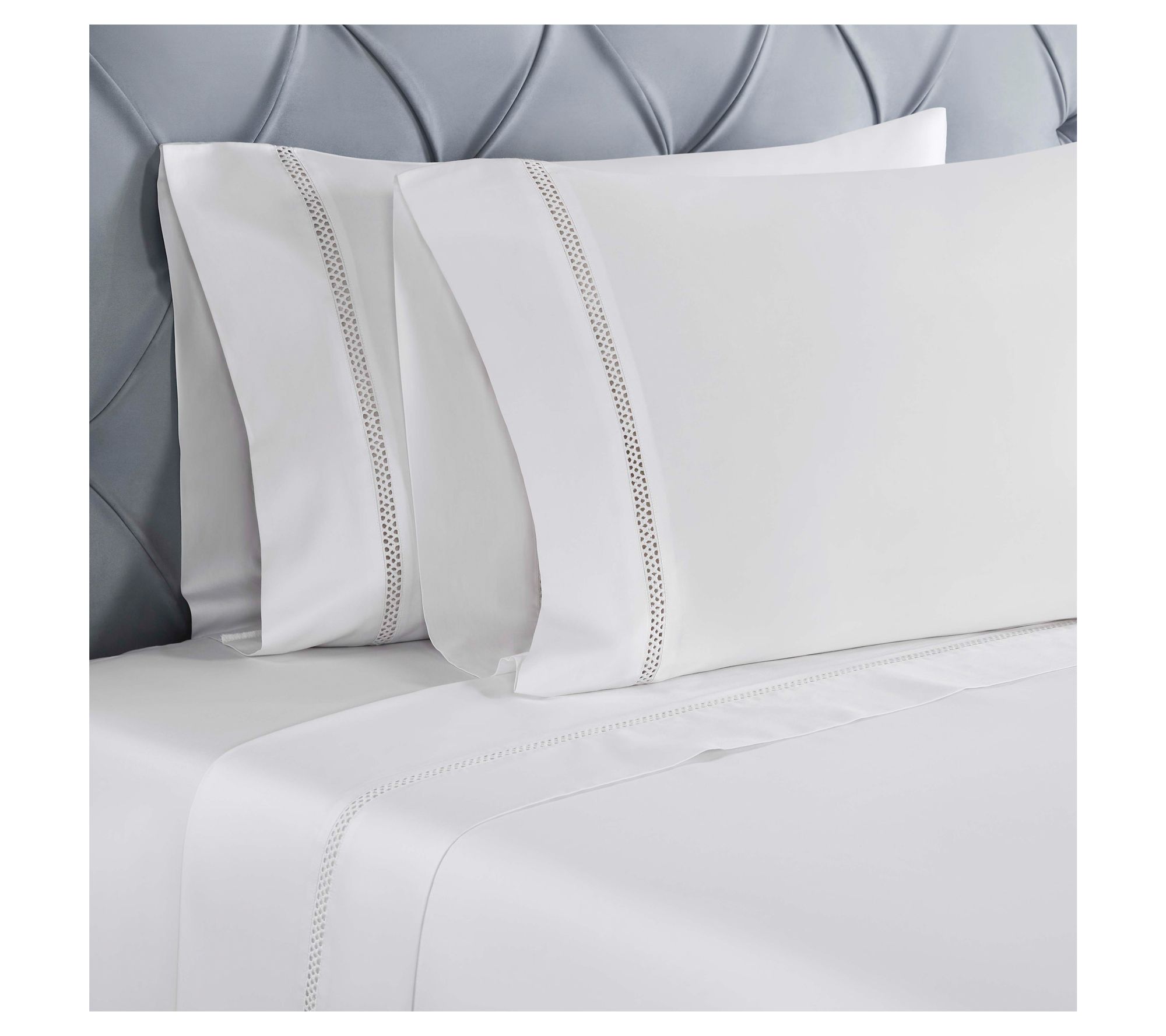• Includes flat sheet, fitted sheet, and two pillowcases