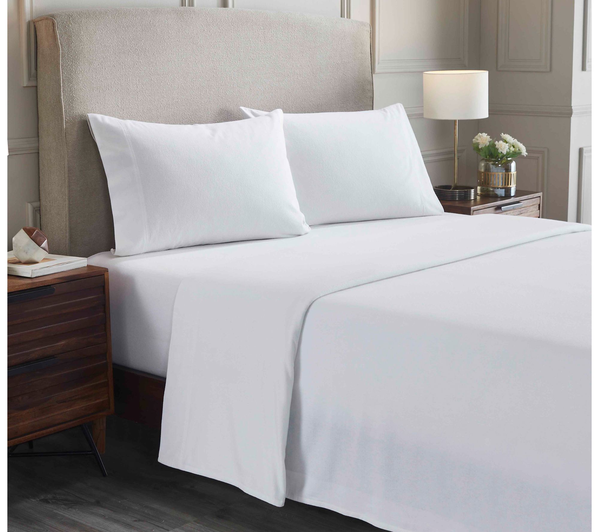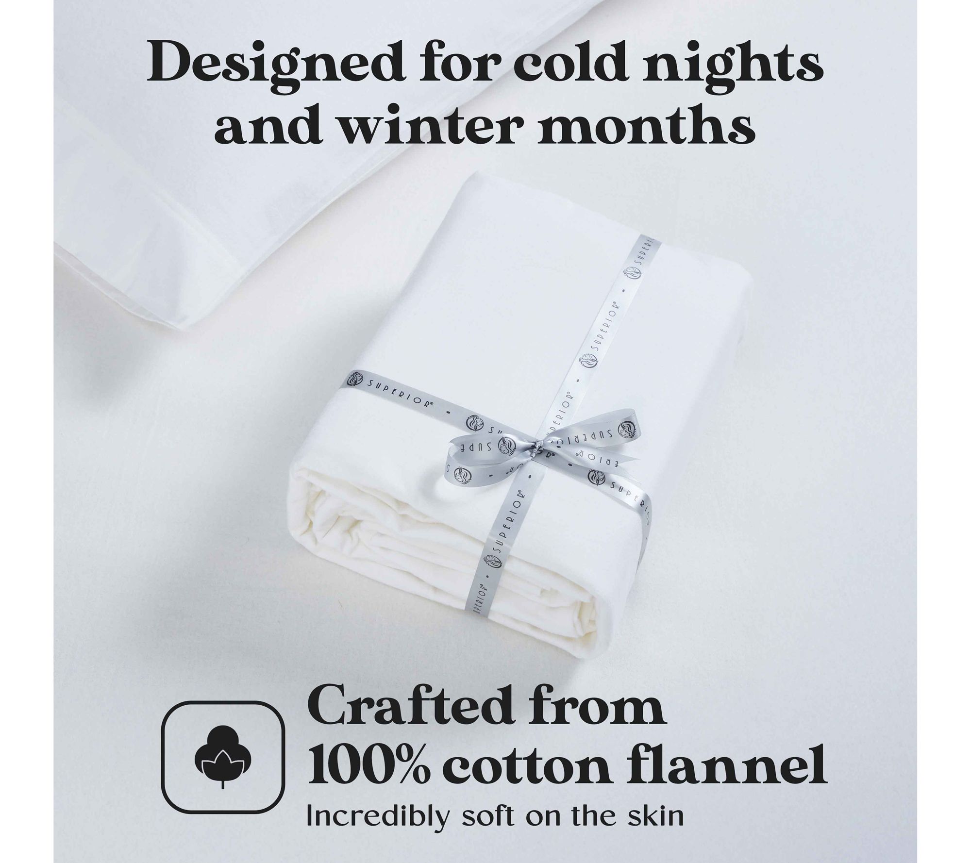 Snuggle in and enjoy an extra layer of warmth as you wind down for the night with this flannel sheet set. Soft to the touch and made for cozy evenings, these sheets invite you to settle into restful sleep and brighten up mornings with their classic solid design. From Superior.