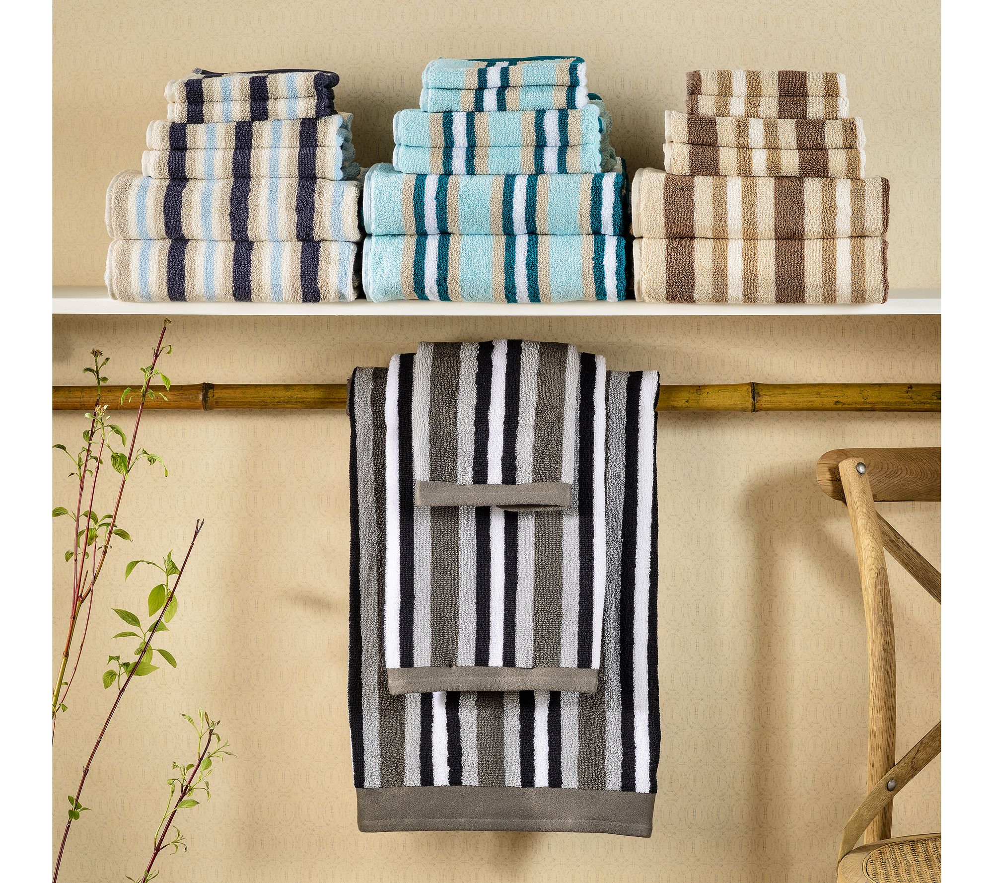 Decorate your bathroom with this striped 100% cotton bath towel set. From Superior.