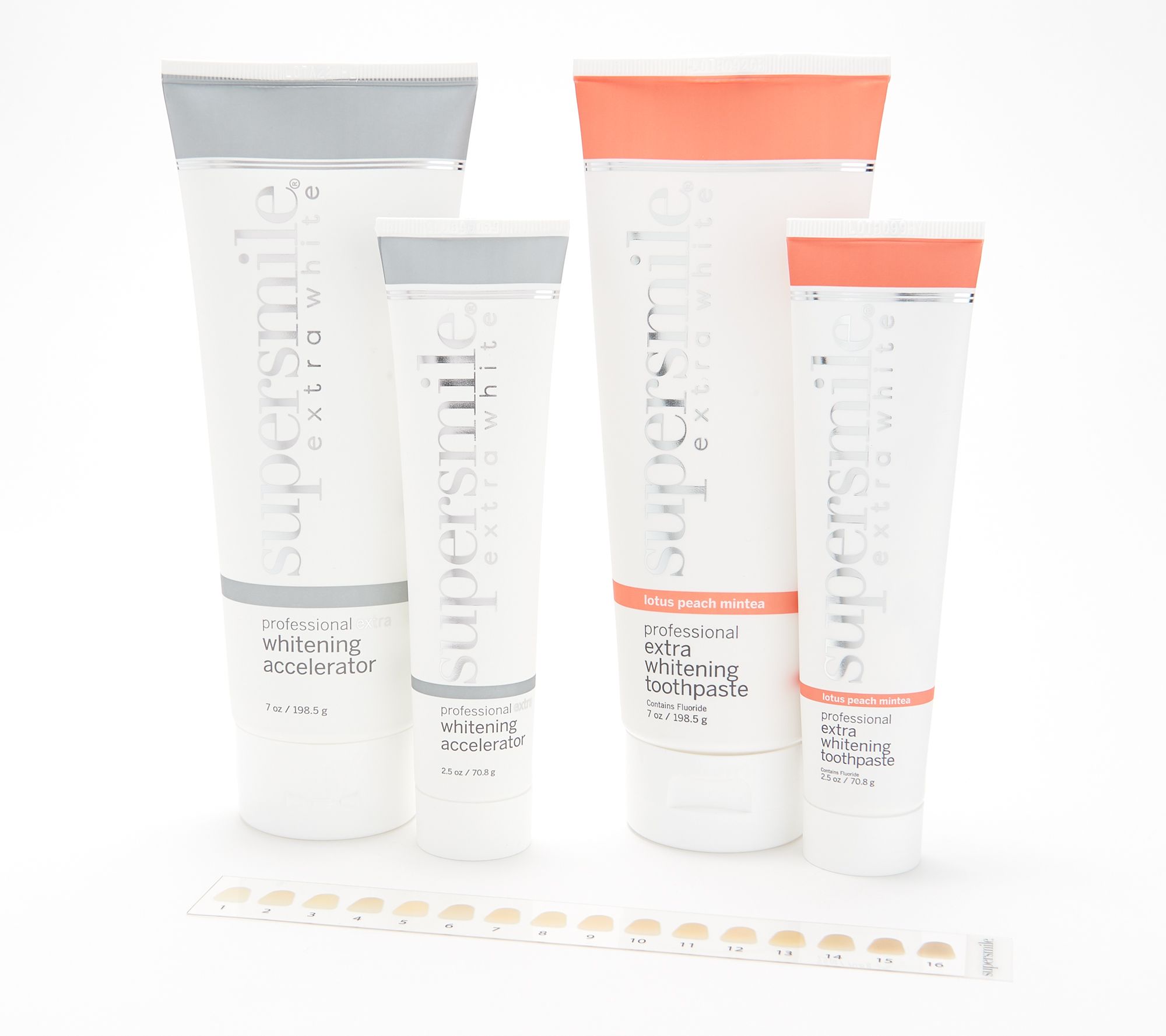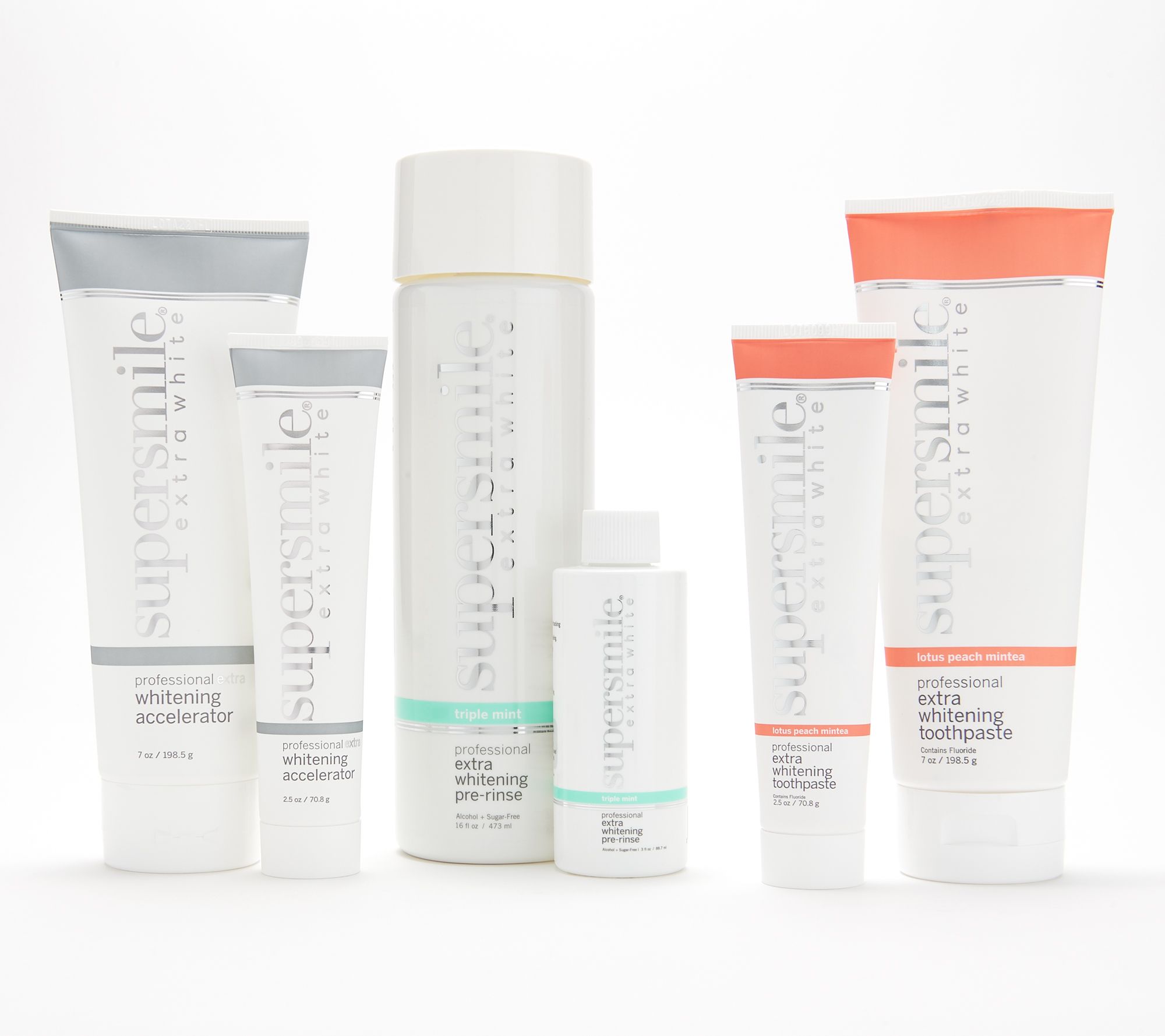 Available in your choice of Triple Mint or Peach White Tea Mint, this collection includes the cult favorite Extra Whitening Pre-Rinse plus the two-step system of Extra Whitening Toothpaste and Extra Whitening Accelerator. The QVC® Customer Choice® Award-winning two-step system uses Calprox to effectively help lift stains chemically rather than abrasively, while the pre-rinse is ideal for providing an ultra-clean and fresh feeling.
