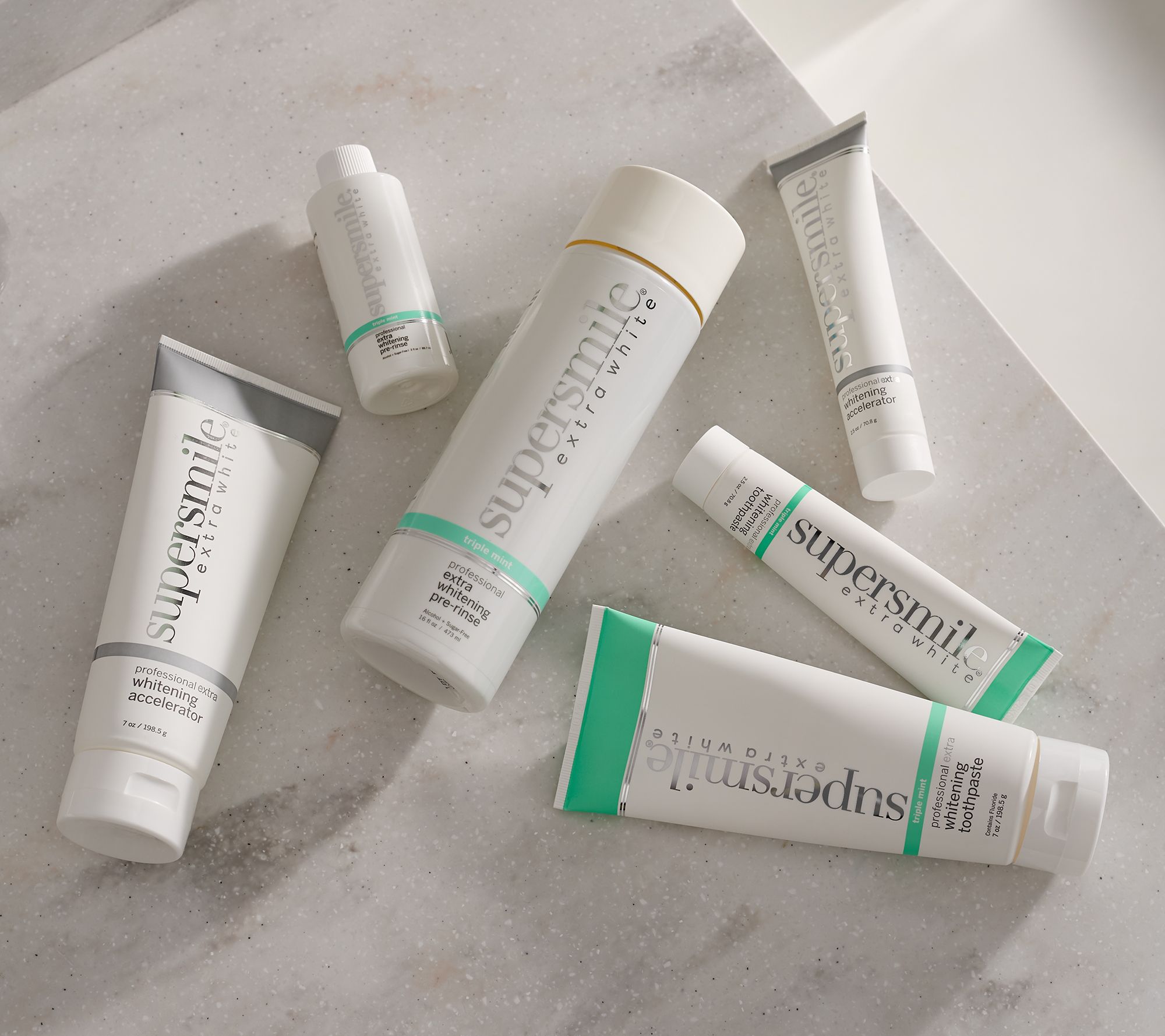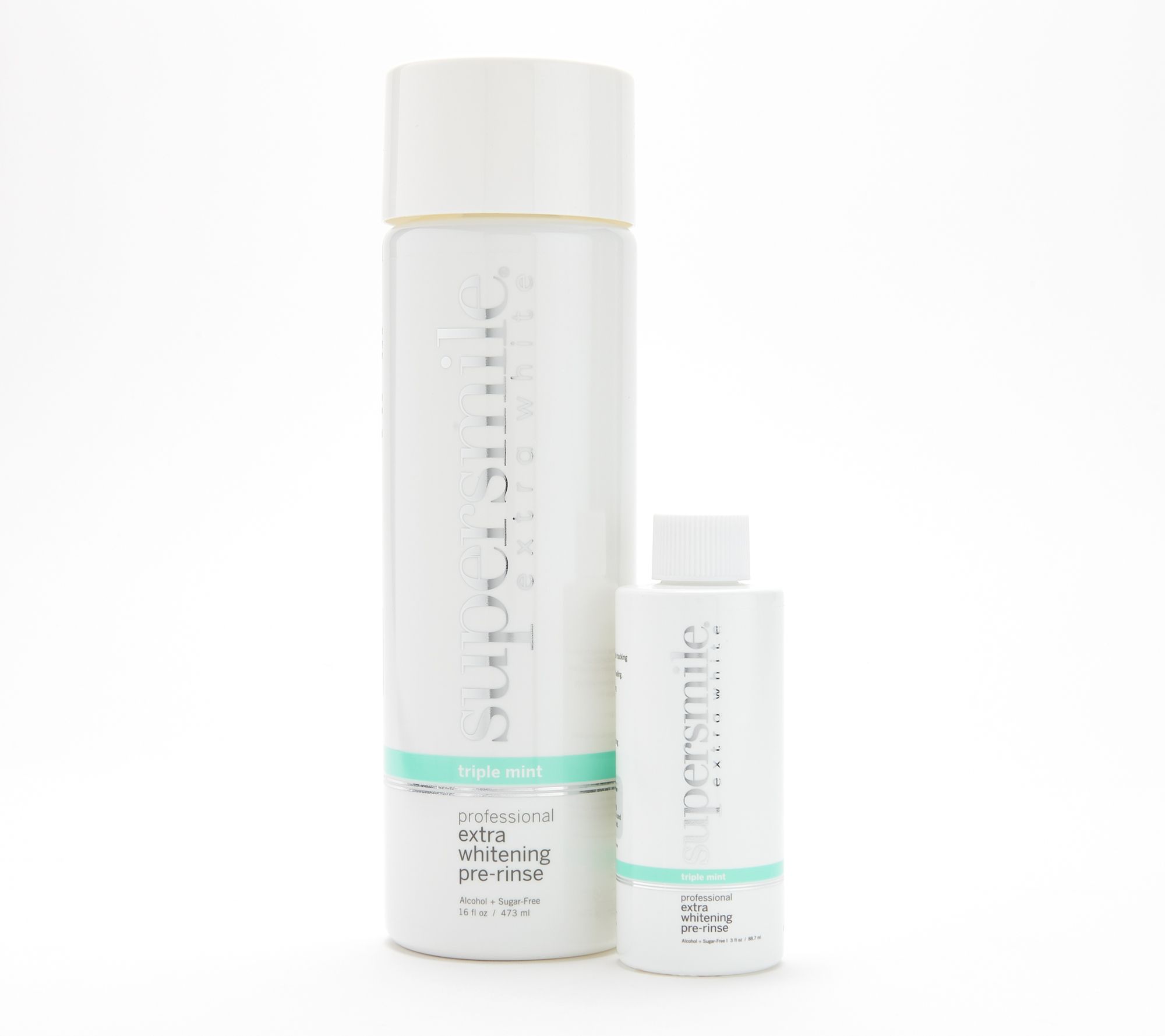 No strips. No trays. Just rinse and brush for a whiter smile with this super-size home and travel-size away set of the completely convenient Supersmile teeth-whitening and oral care system.