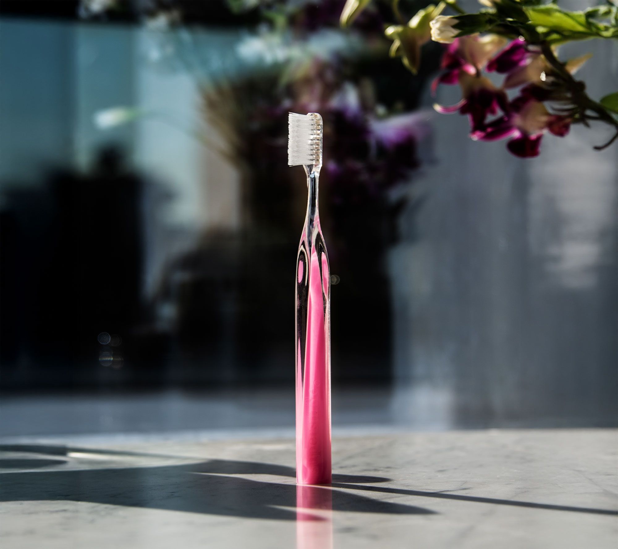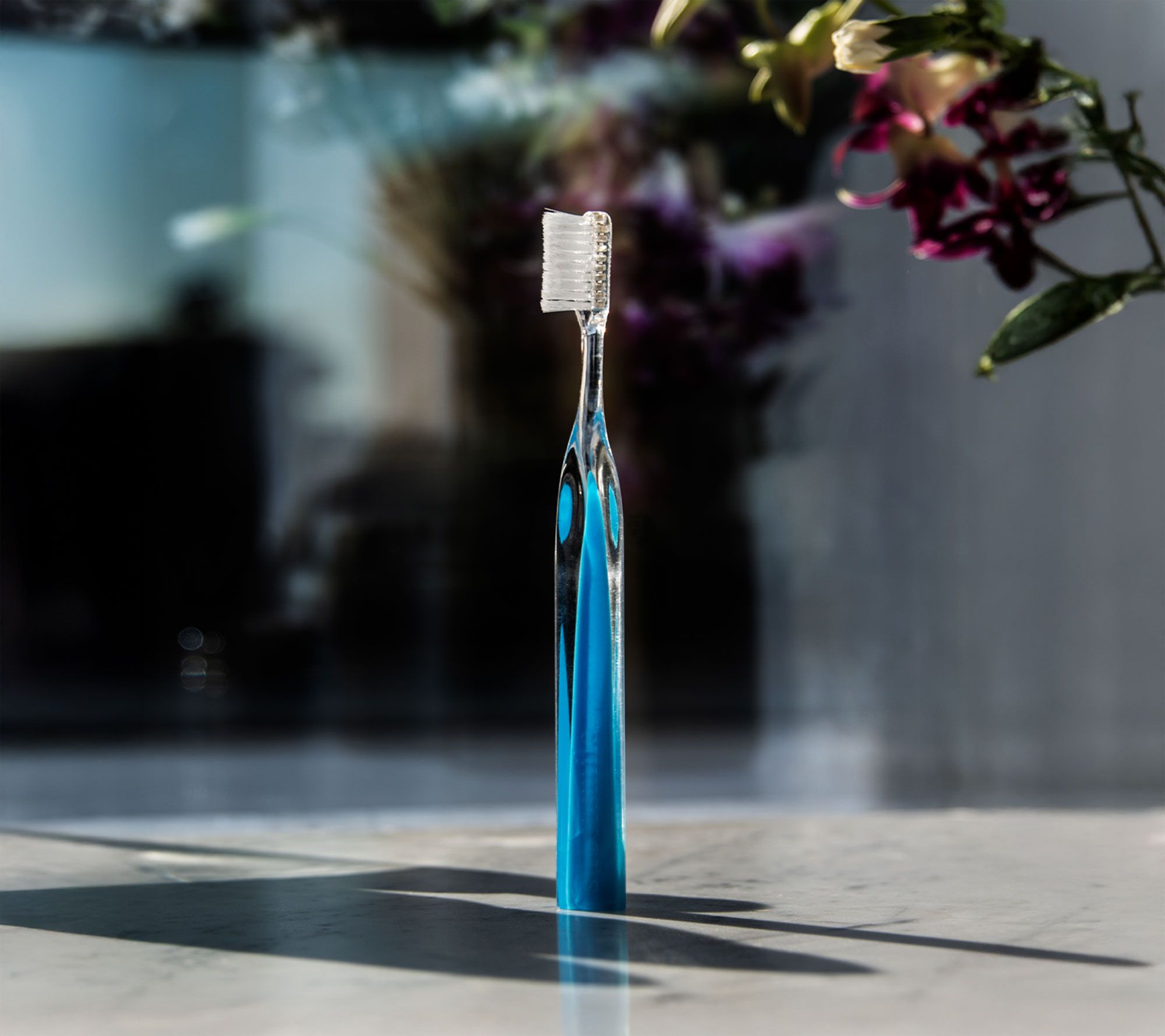 The set is completed with a matching color Crystal Collection Toothbrush, designed with a 45-degree angled toothbrush to help reach in between the gumline for a more thorough, effective clean. Soft bristles provide comfortable brushing, while sleek crystal inspired design adds an elegant touch to your routine.