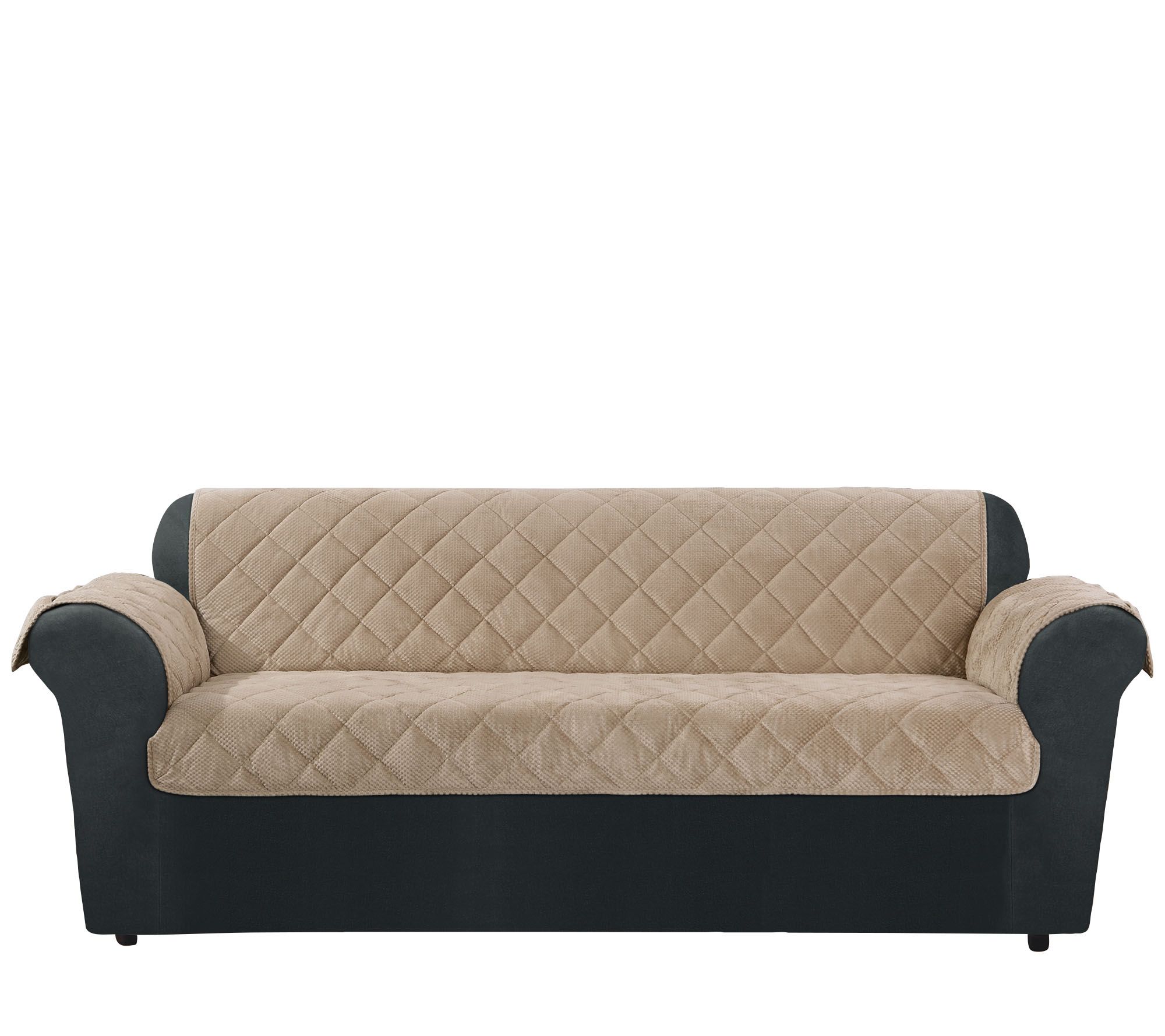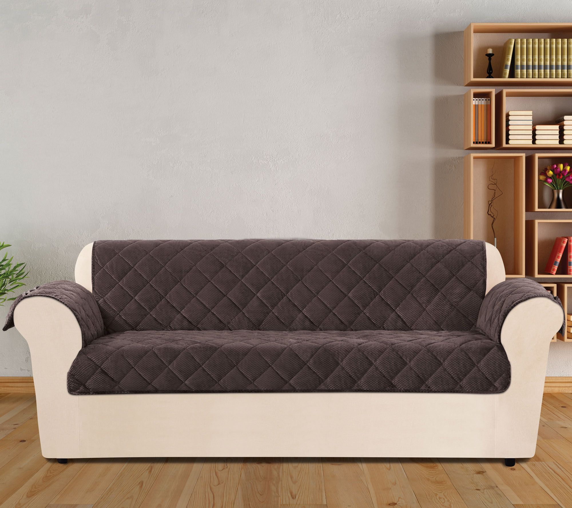 Looking to protect your furniture from fur, dirt, debris, and more? Then this Sure Fit sofa furniture cover will be sure to pique your interest. Paw print silicone pads ensure a nonslip grip for the soft, textured pique fabric, finished in an allover diamond quilt design. From Sure Fit.