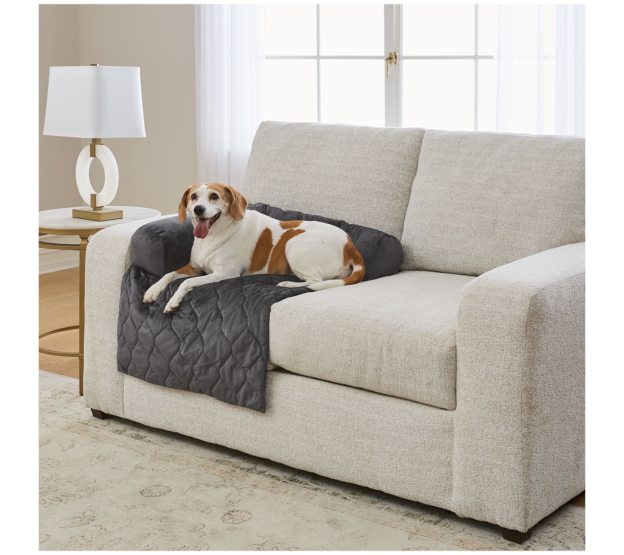 Your furniture is no longer the "no fur zone" with this Miracle Mink quilted pet bed protector from Surefit. Now your furry friends can enjoy slumbering on the sofa, cozy and content right next to you, without the worry of pet mess or accidents. From Surefit.