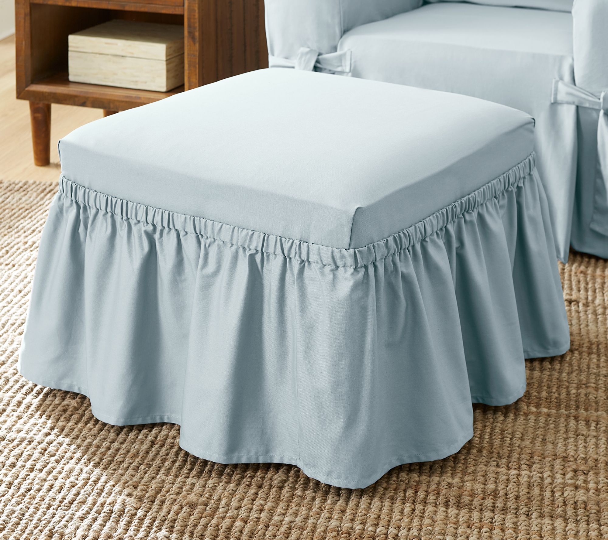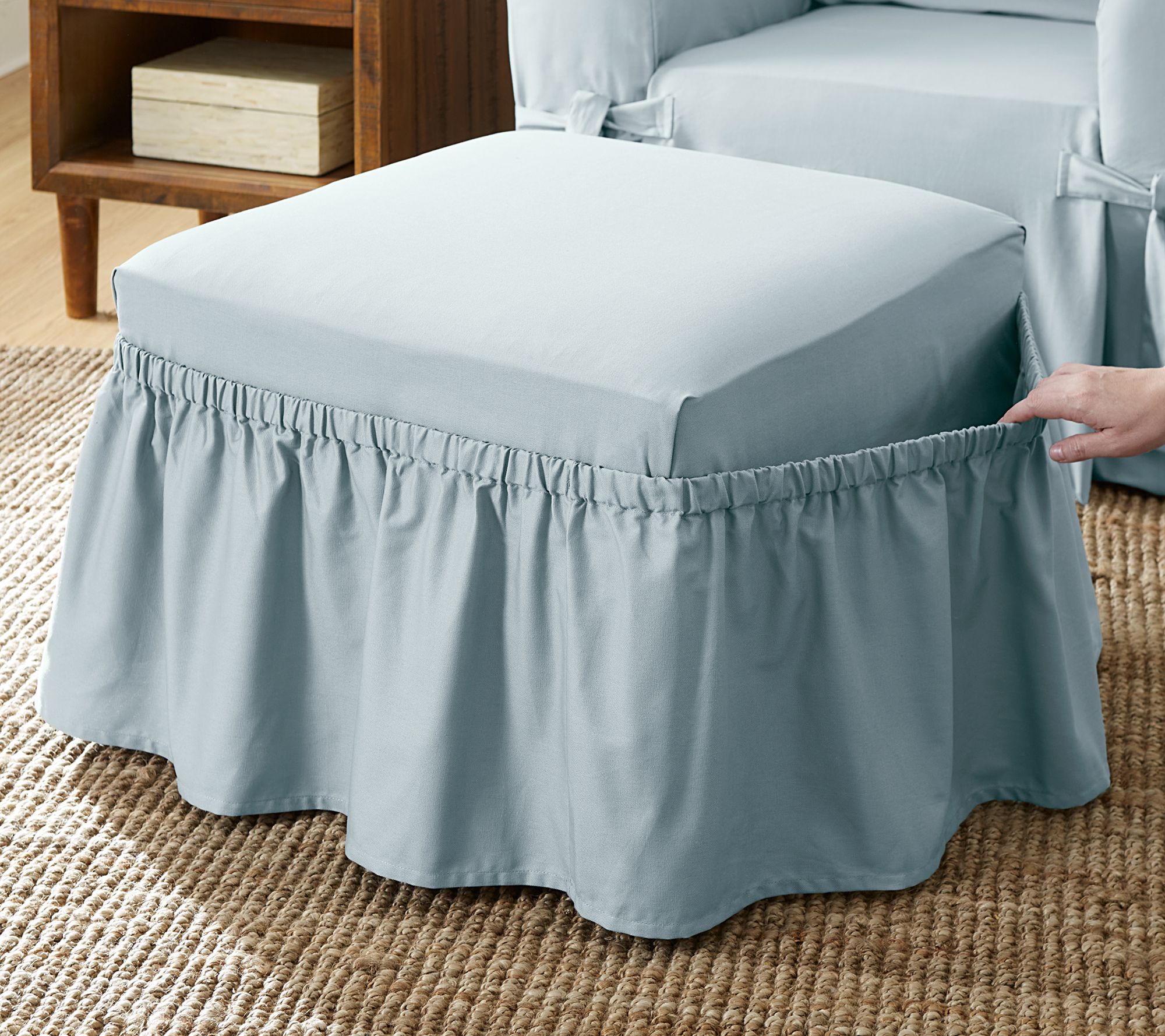 You've loved that ottoman for years -- and it's got plenty of life left. Just needs a little TLC. Surefit to the rescue! Keep your investment looking fresh and new with this two-piece woven slipcover. An elasticized skirt makes it an easy fit. From Surefit.