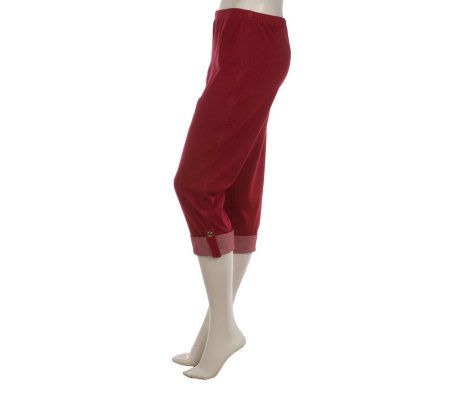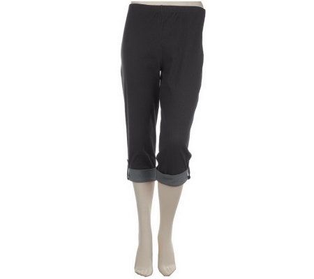 Not your average leggings. These solid-colored Bleustretch(TM) fabric leggings are done in a capri style, with cuffed legs accented with cute button-tab closures. Wear these with your favorite sneaks or flats for a cool, casual look. From Susan Graver.