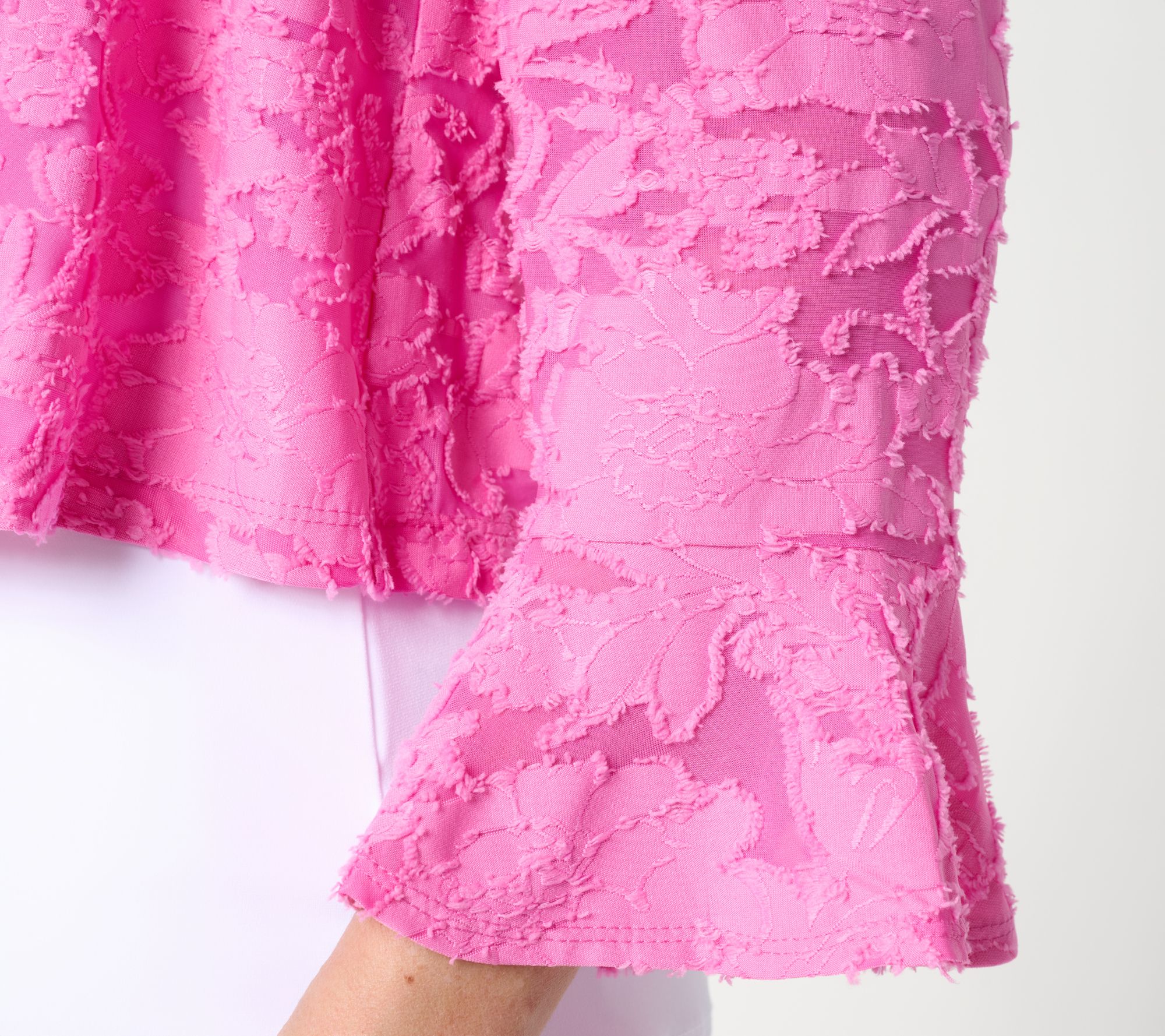 Susan Graver Burnout Knit Shrug with Bell Sleeve Cuff