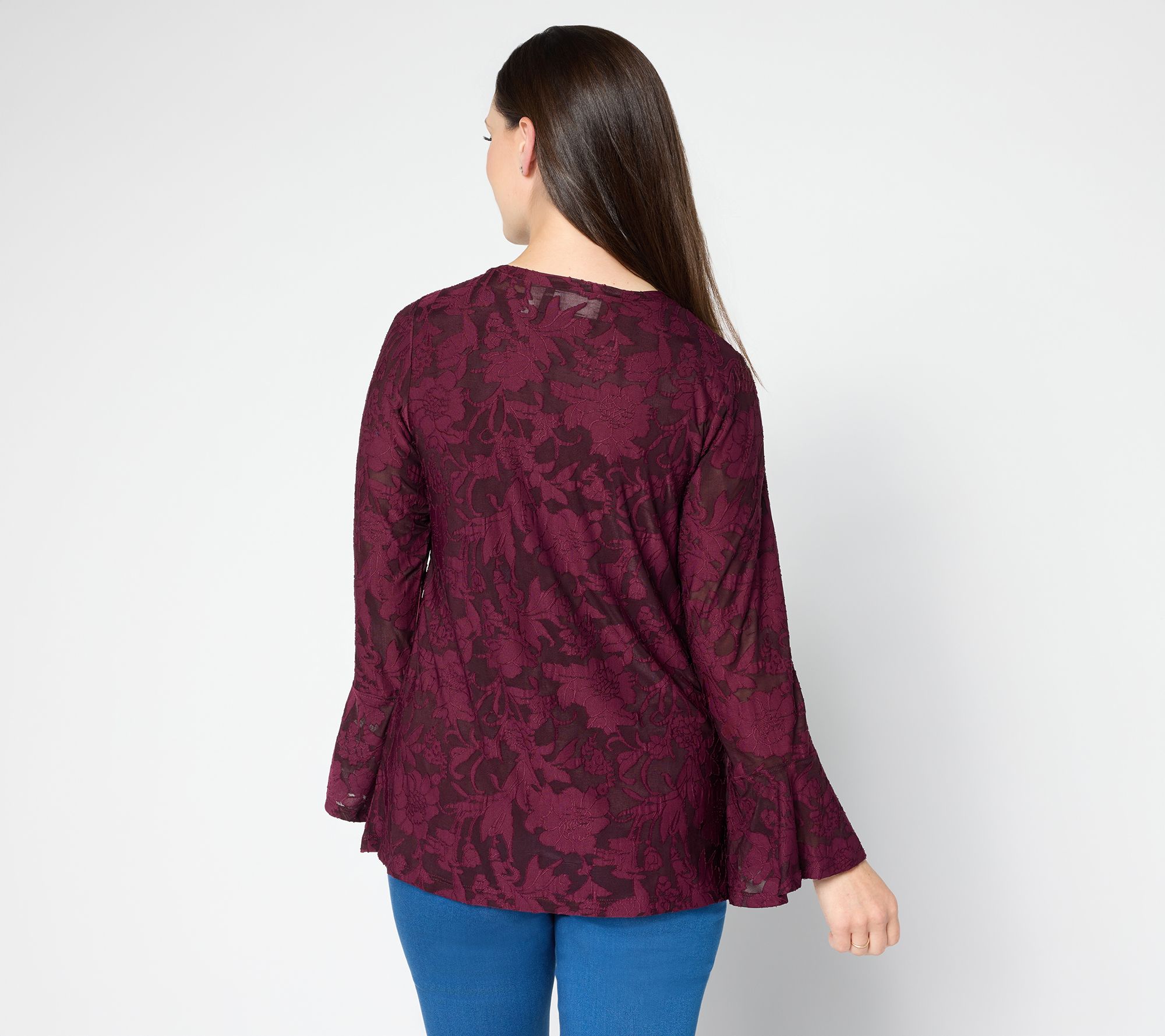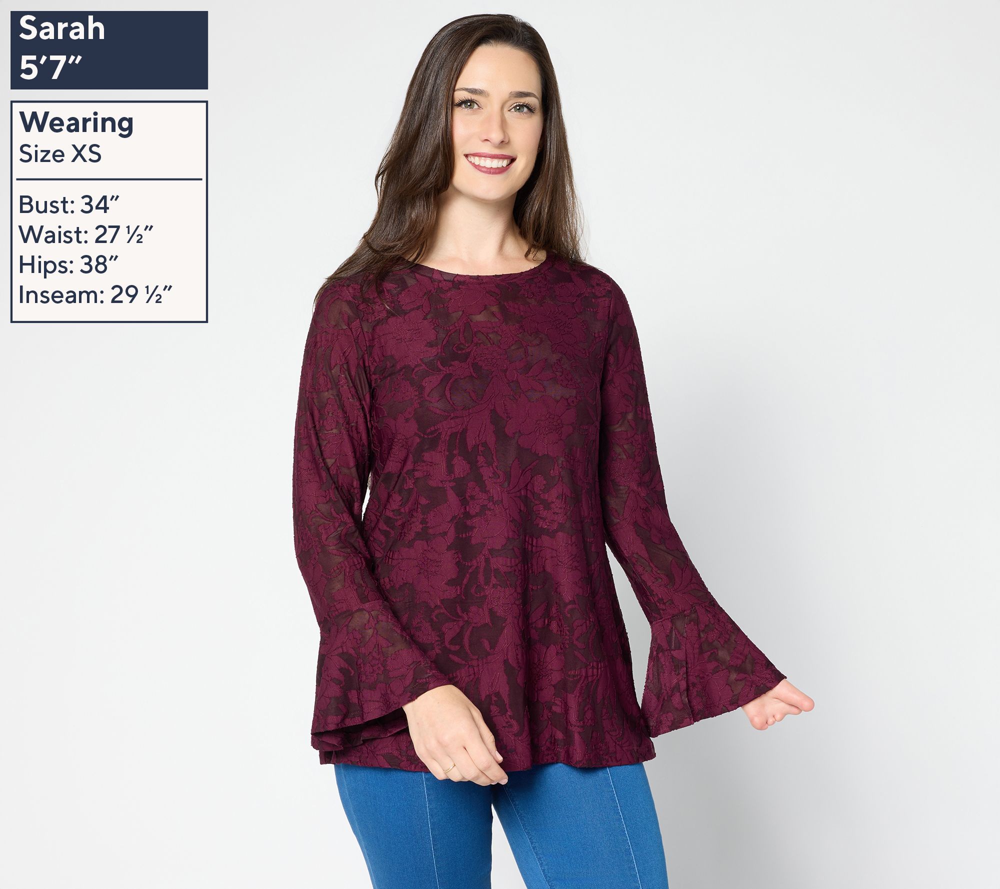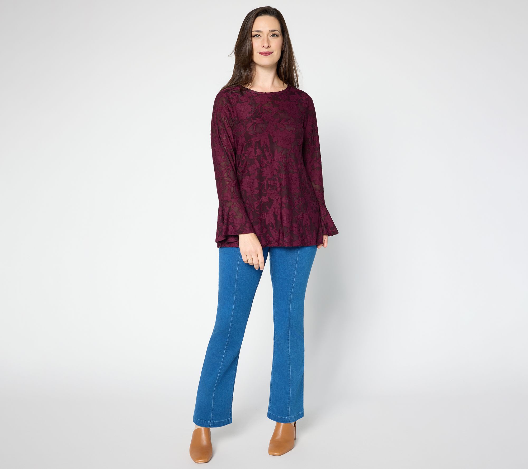 Susan Graver Burnout Knit Top with Flounce Sleeves