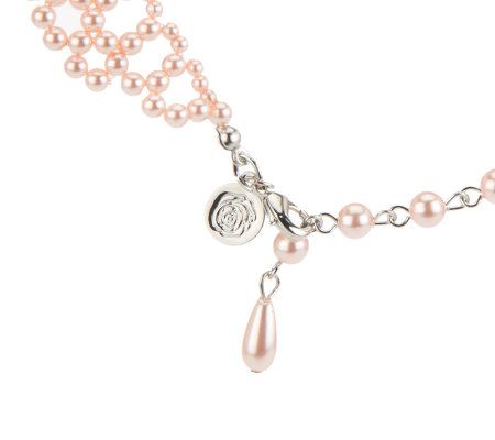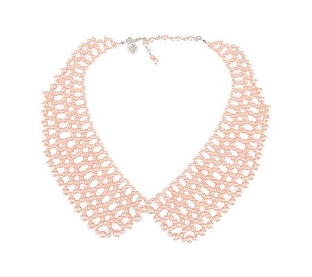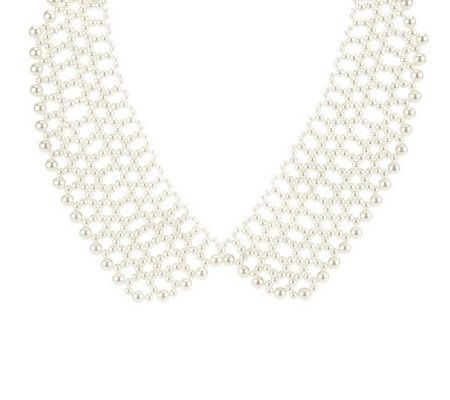 Neck lines. Dress up tunics and T-shirts with this pretty, feminine, collar-style necklace. Simulated pearls make up the faux collar, which can be worn over the necklines of dresses, shirts, and sweaters. From Susan Graver.