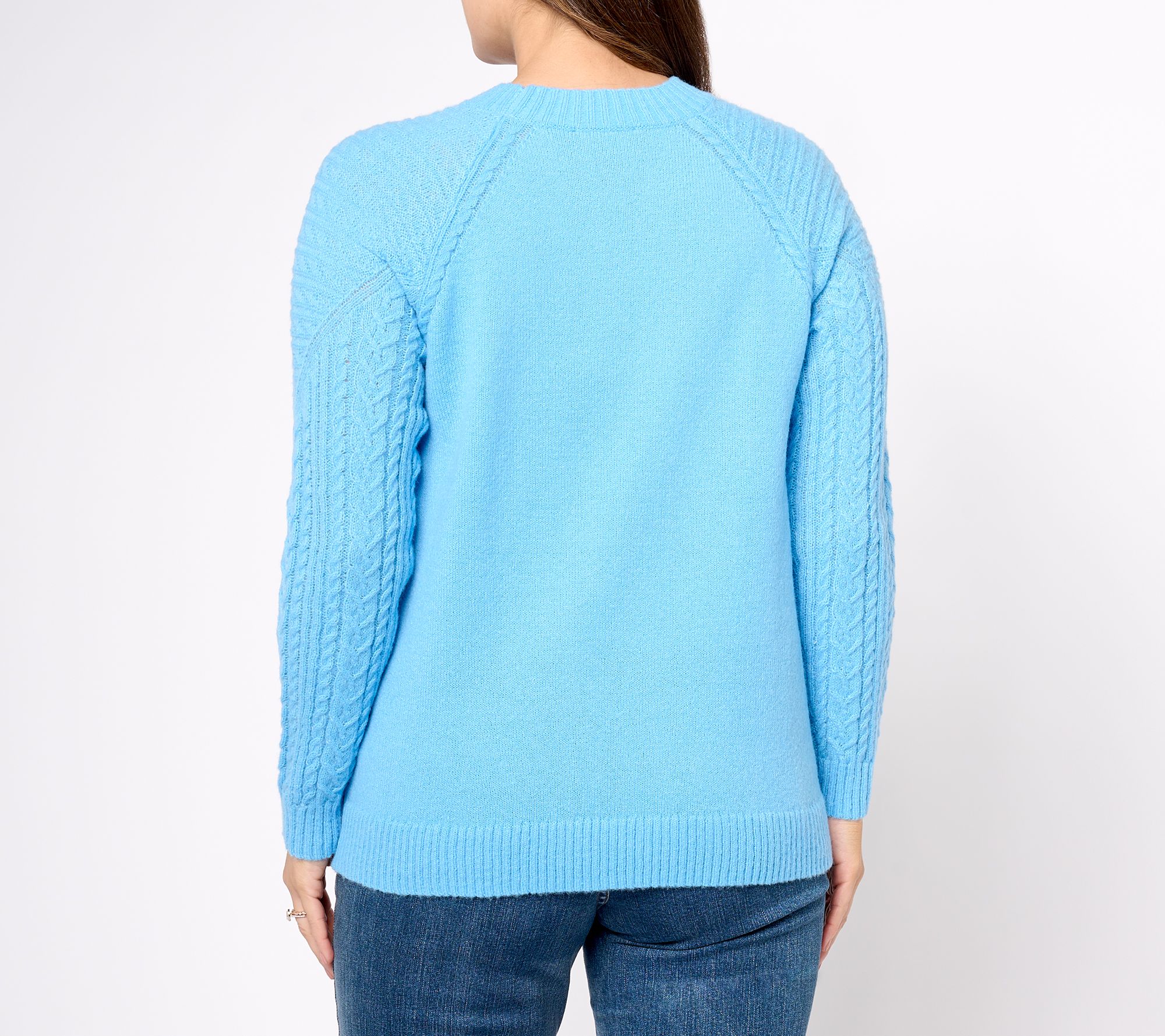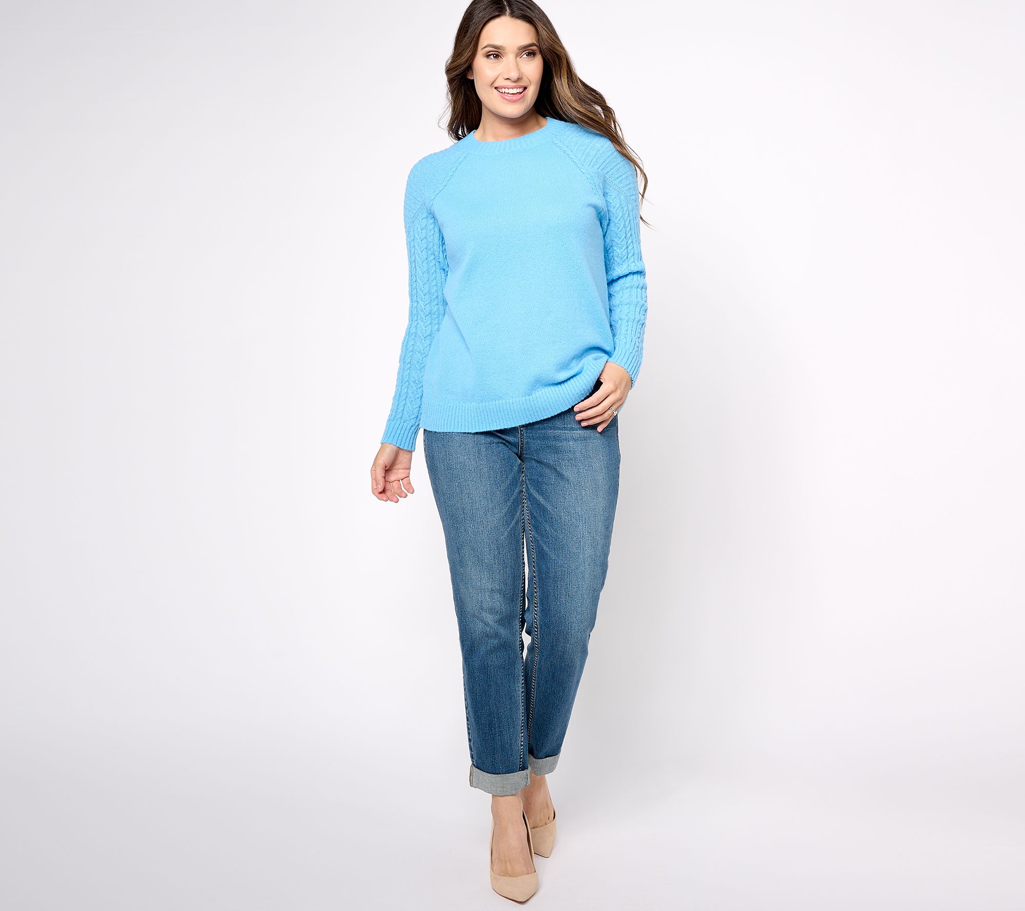 Susan Graver Crewneck Sweater with Novelty Stitch Sleeve