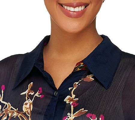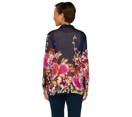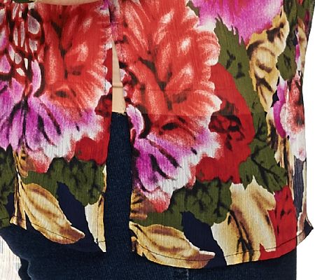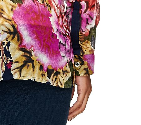 Go beautifully bold with this posh printed top. Done in crinkle chiffon, it makes a chic statement with solid trousers, skirts, and jeans. From Susan Graver.