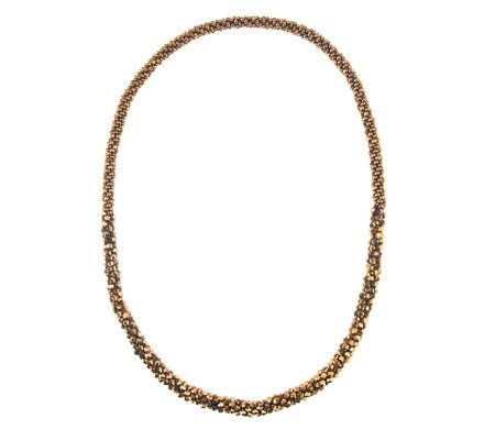 In search of a sparkling strand? Slip on this light-catching metallic necklace--in a mod, half bead, half crystal design. It boosts the glamour-girl quotient of everything from party dresses to work-week attire. From Susan Graver.