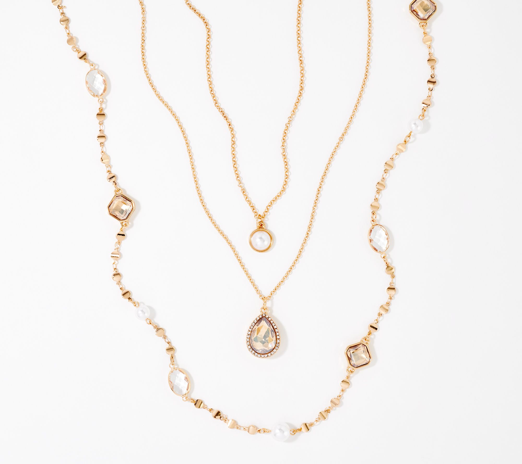 Susan Graver Crystal & Pearl Multi-Strand Necklace