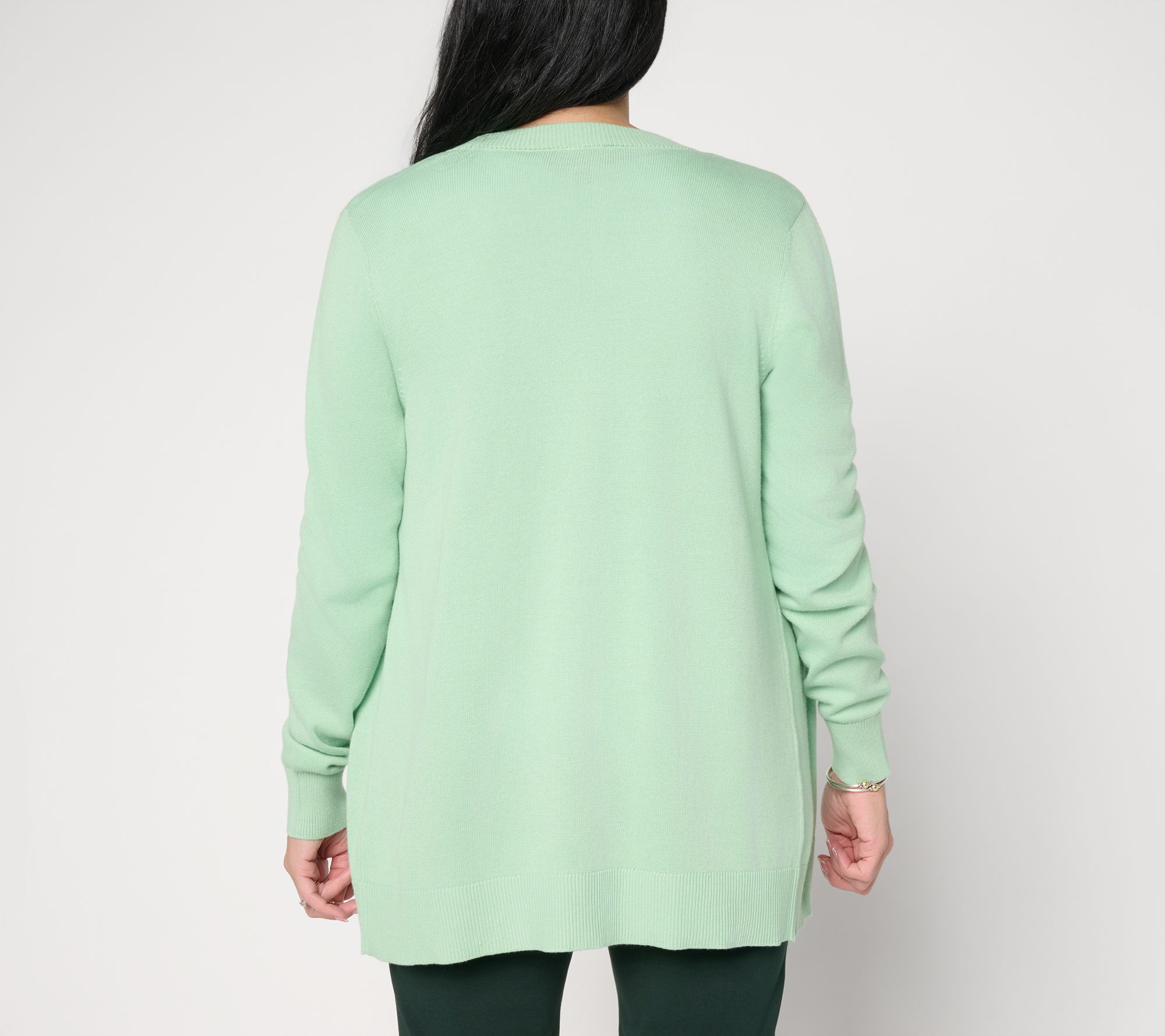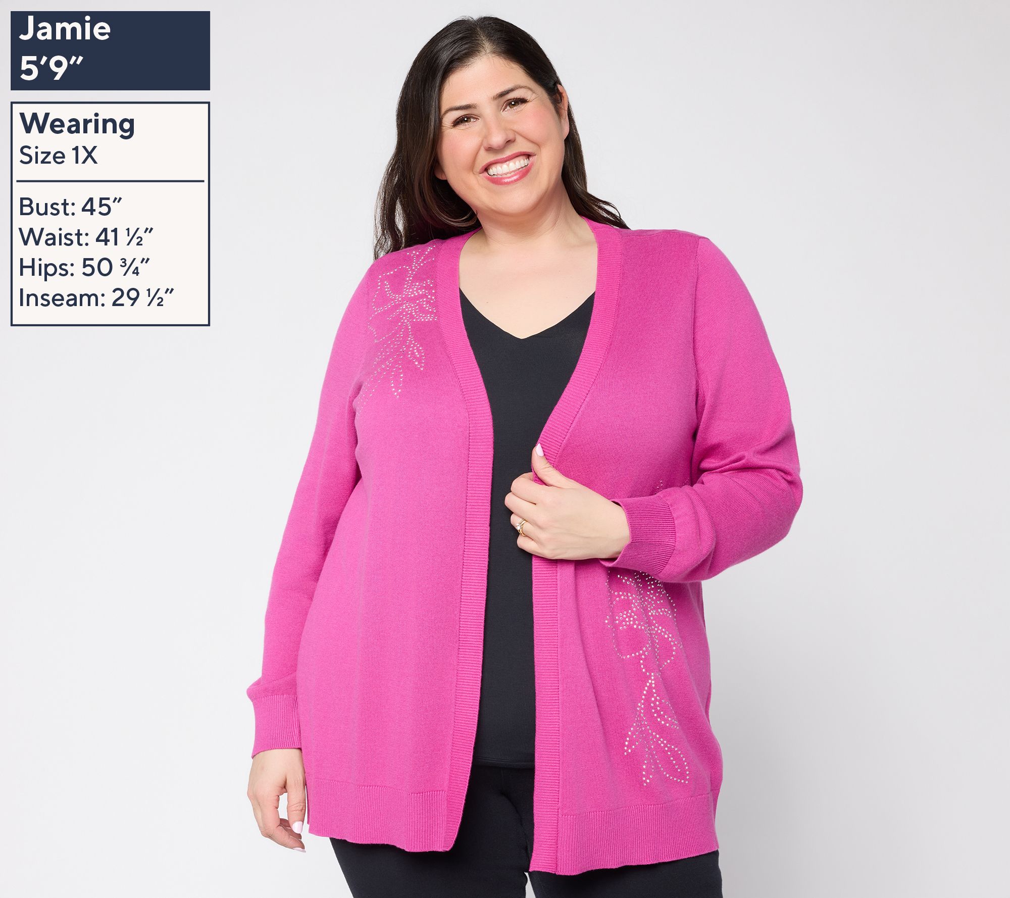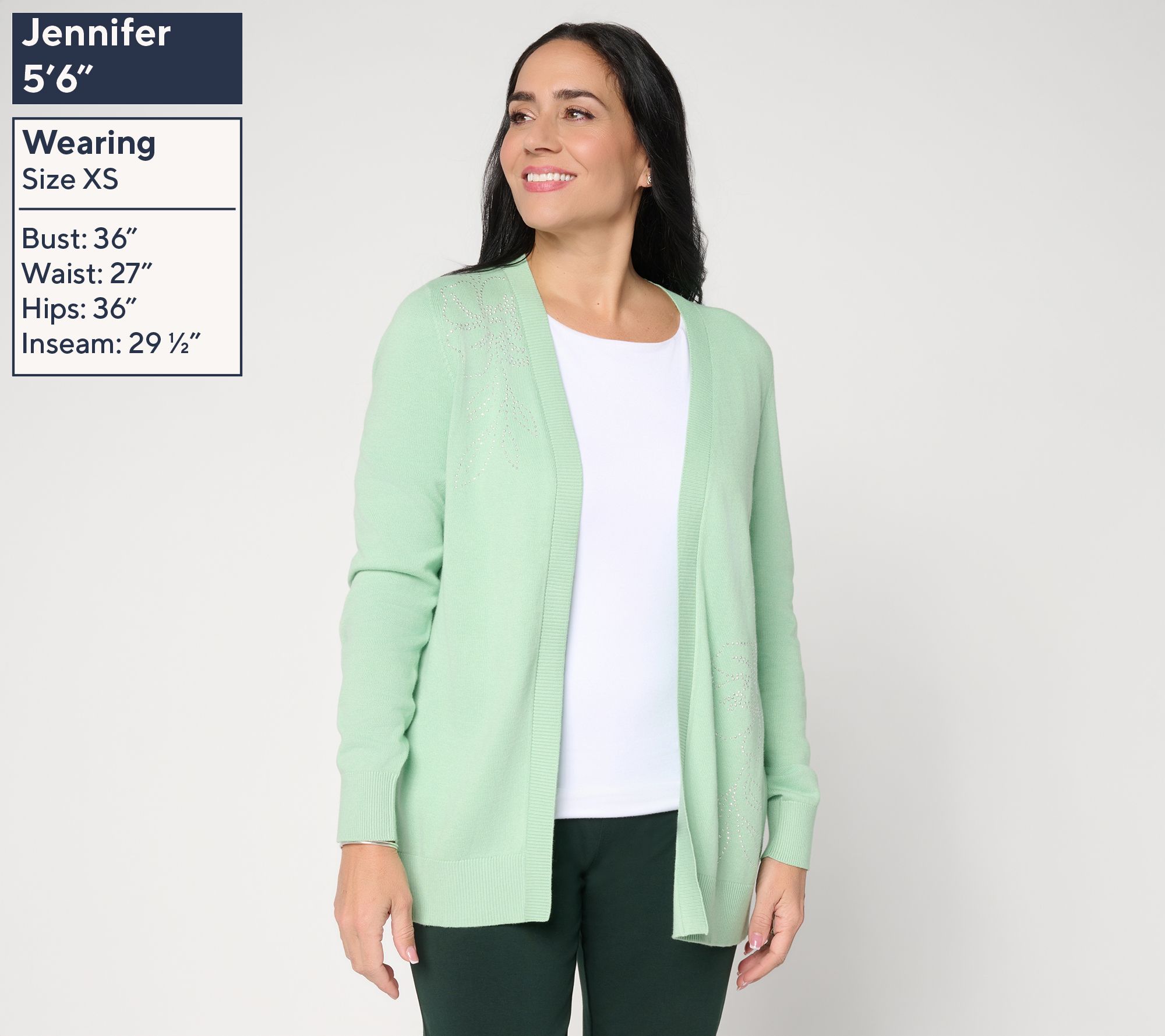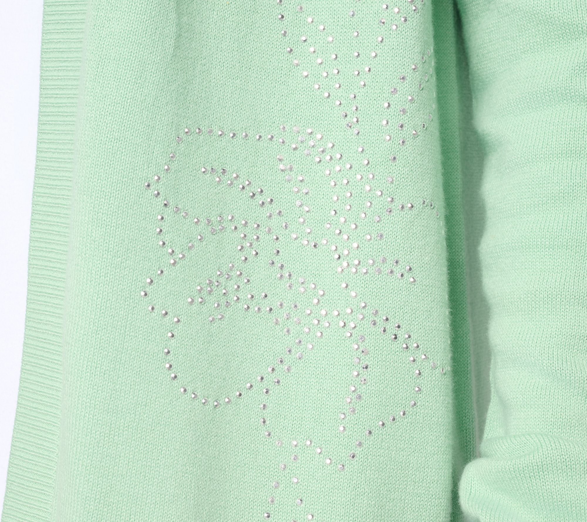 Ready to add a shot of shimmer to your daily 'fits, this cute cardigan adapts beautifully from casual brunch to cool office air, layering smoothly over blouses, tanks, or dresses. Heat-set embellishments bring a sprinkling of sparkle while ribbed cuffs and hem lends texture and a polished finish to this open-front sweater. From Susan Graver.