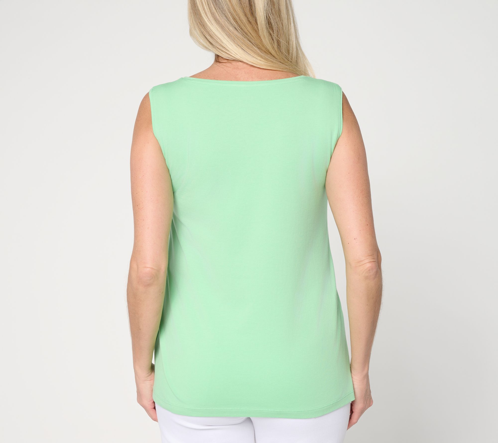 Sprucing up your summer essentials? Don't skimp! This comfy cotton tank features a graceful bateau neckline that offers reassuring coverage, so you won't blush whenever you bend forward. It easily layers for weekday outfits, or wear it solo for sun-drenched days. From Susan Graver.