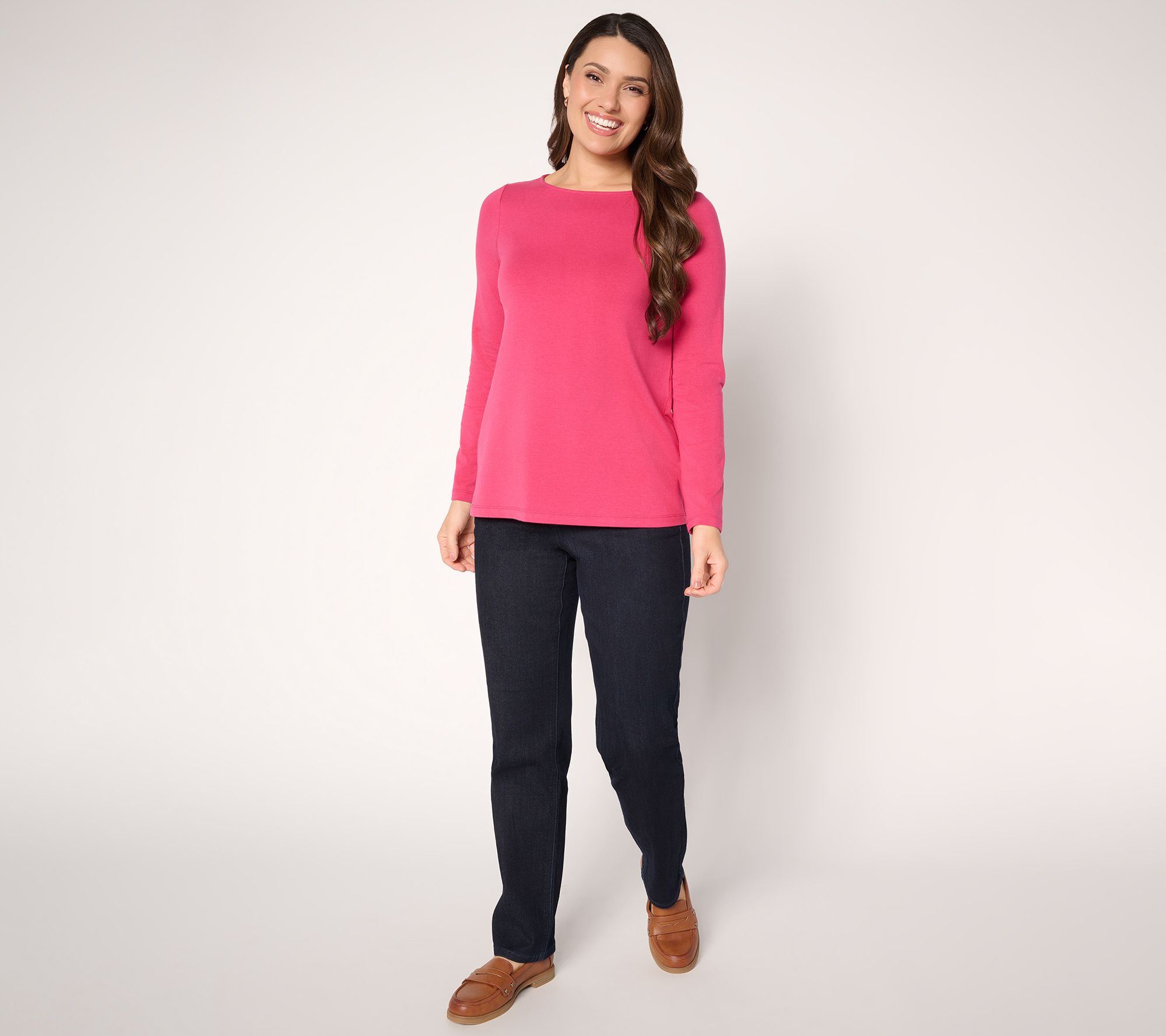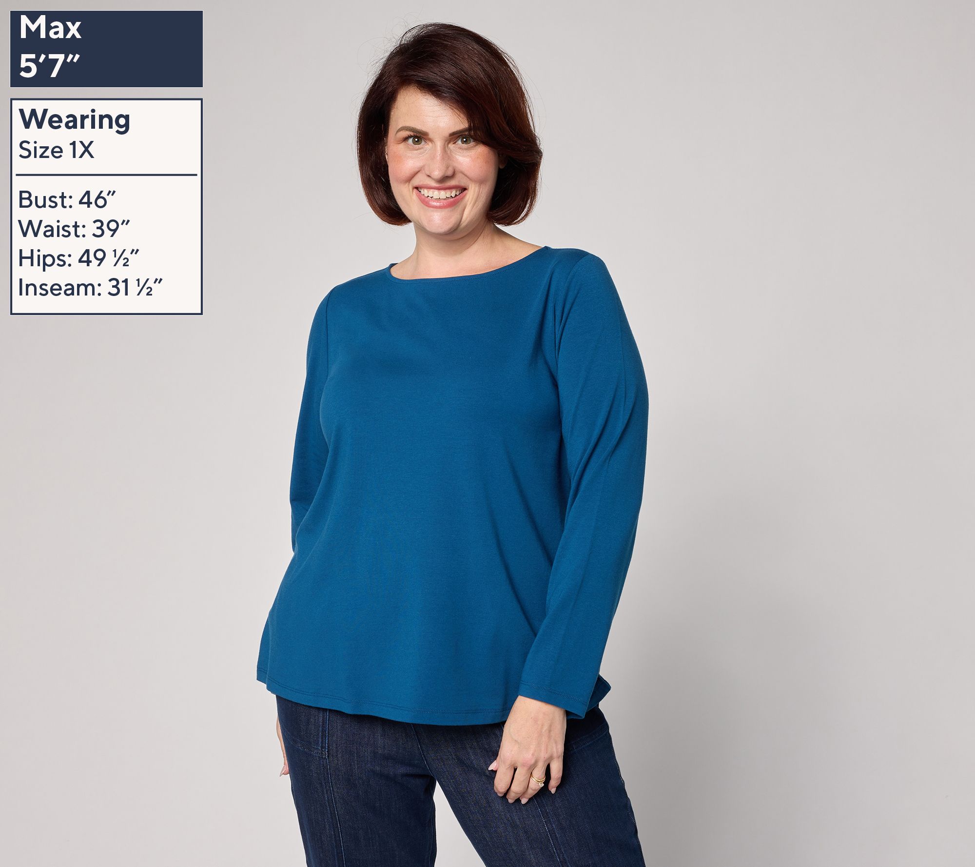 A slightly fuller sweep to accommodate a range of pants, a coverage-providing bateau neck, and comfy stretch cotton-modal fabrication make this top one we'll always want to have in our closet. (Psst... better grab a second for wash day!) From Susan Graver.