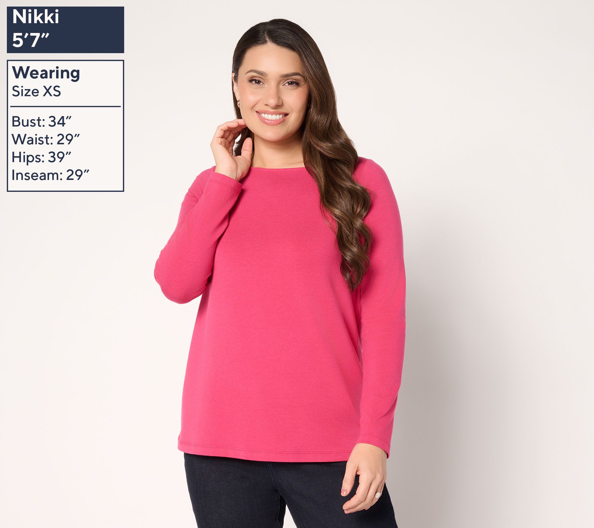 Susan Graver Essentials Comfy Cotton Bateau Neck Top