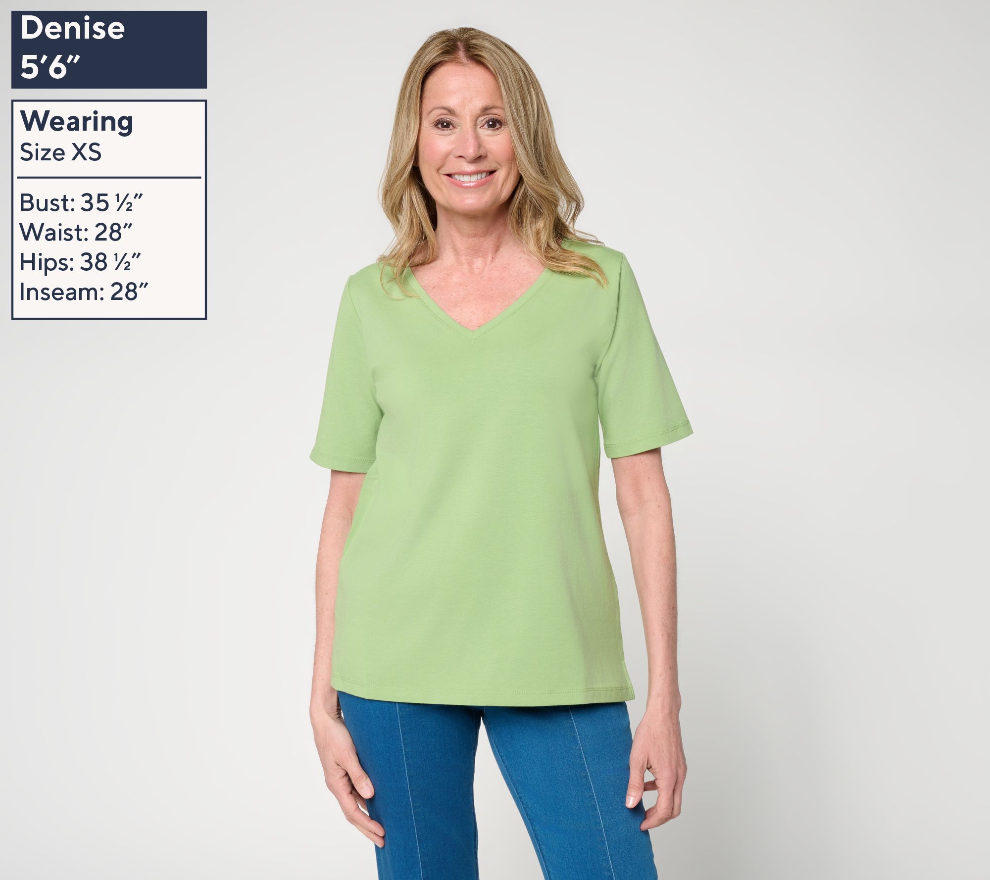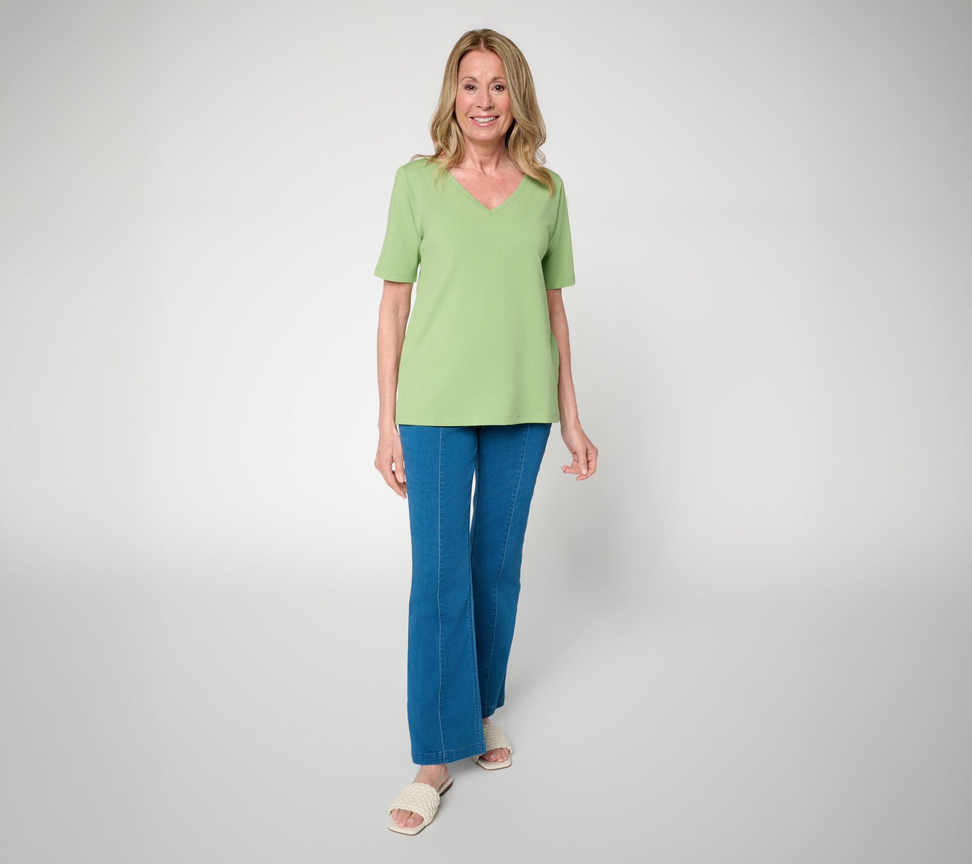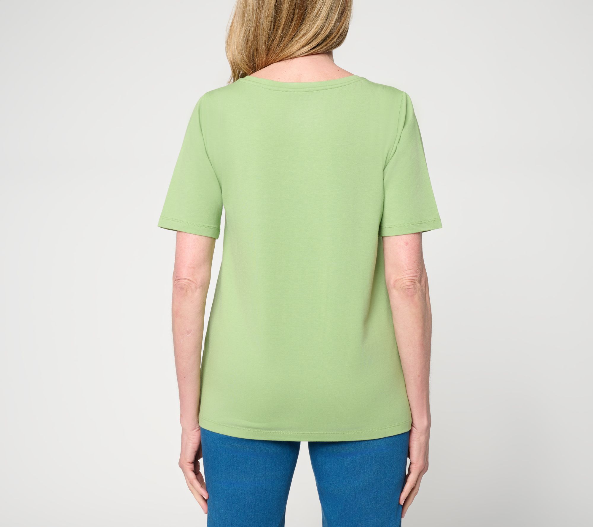 Susan Graver Essentials Comfy Cotton V-Neck Elbow Sleeve Top