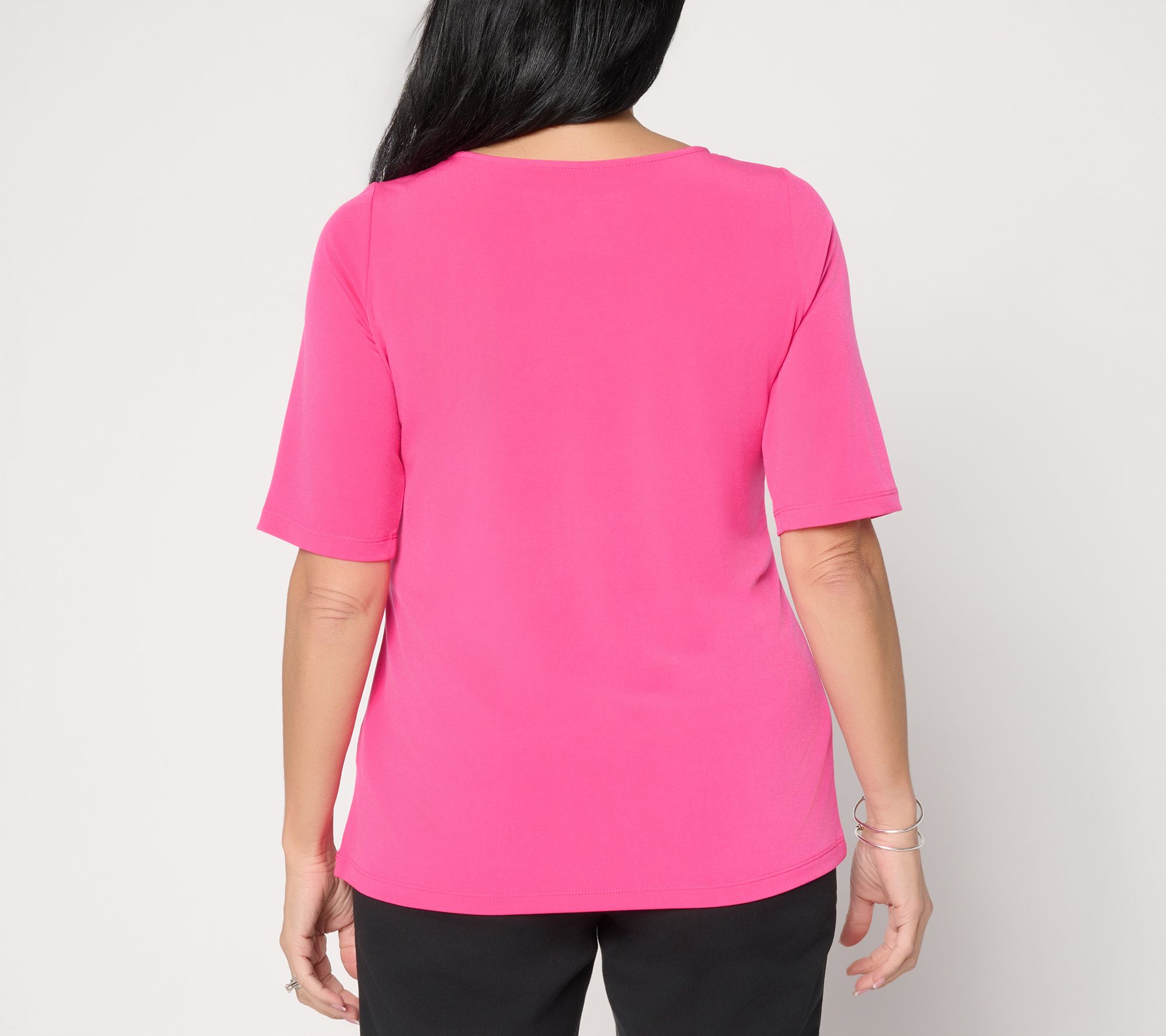 Picture yourself in this Liquid Knit top, the easy fabric draped comfortably over your curves. Pair it with skinny jeans or a patterned skirt, and you've got yourself a look that lasts for seasons to come. From Susan Graver.