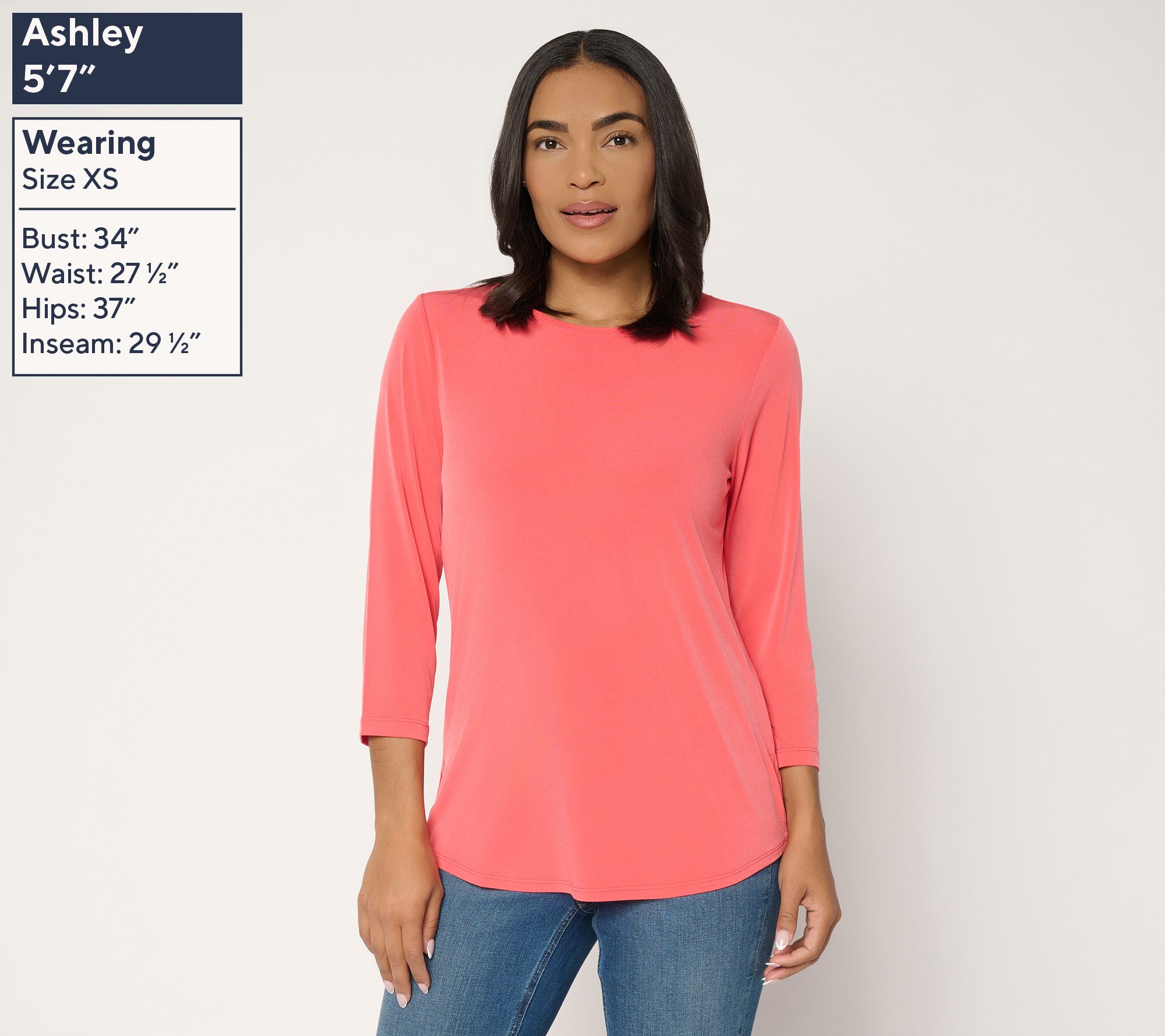 Fabrication: Liquid Knit®: soft, flattering knit with a smooth feel and fluid drape