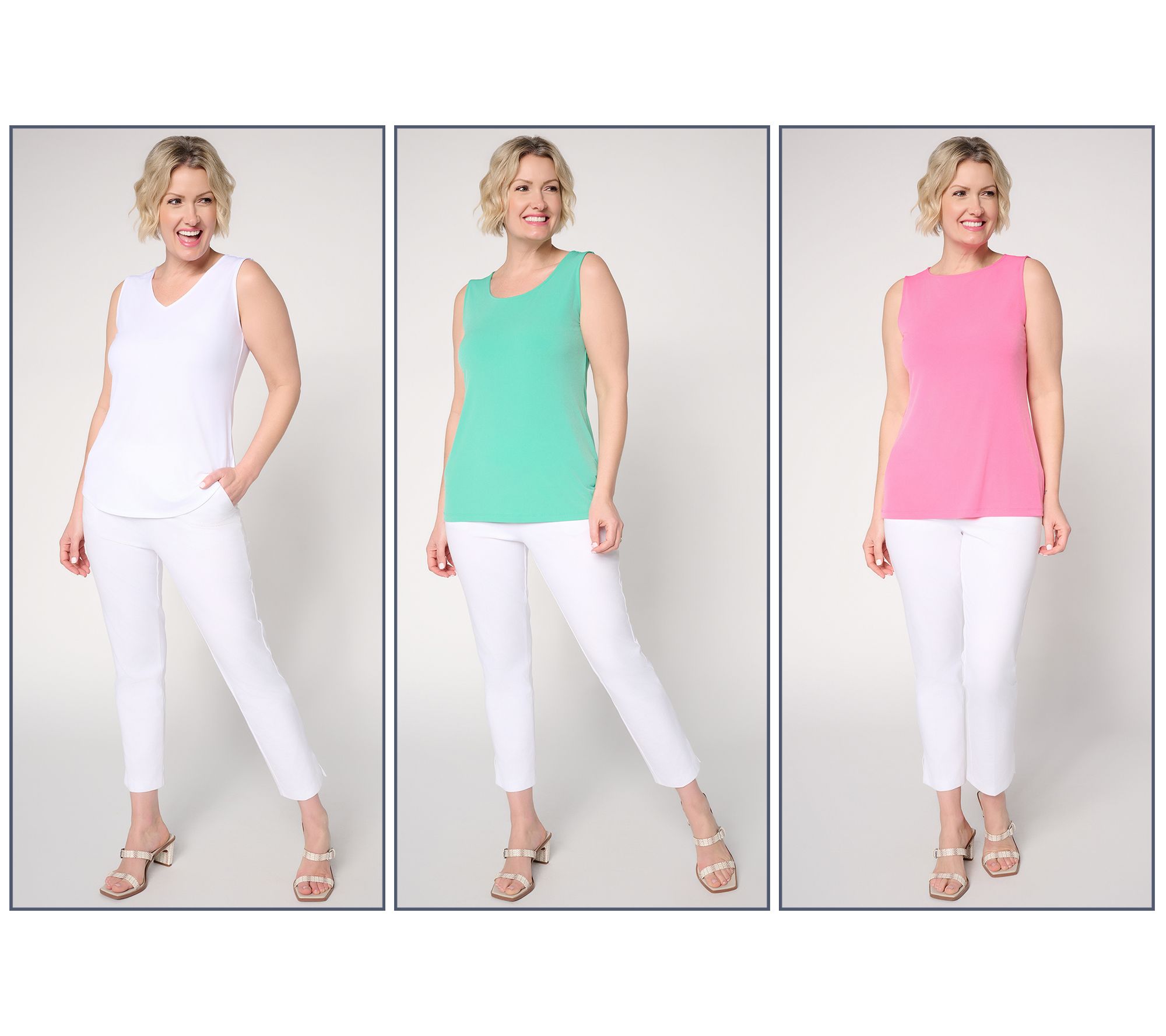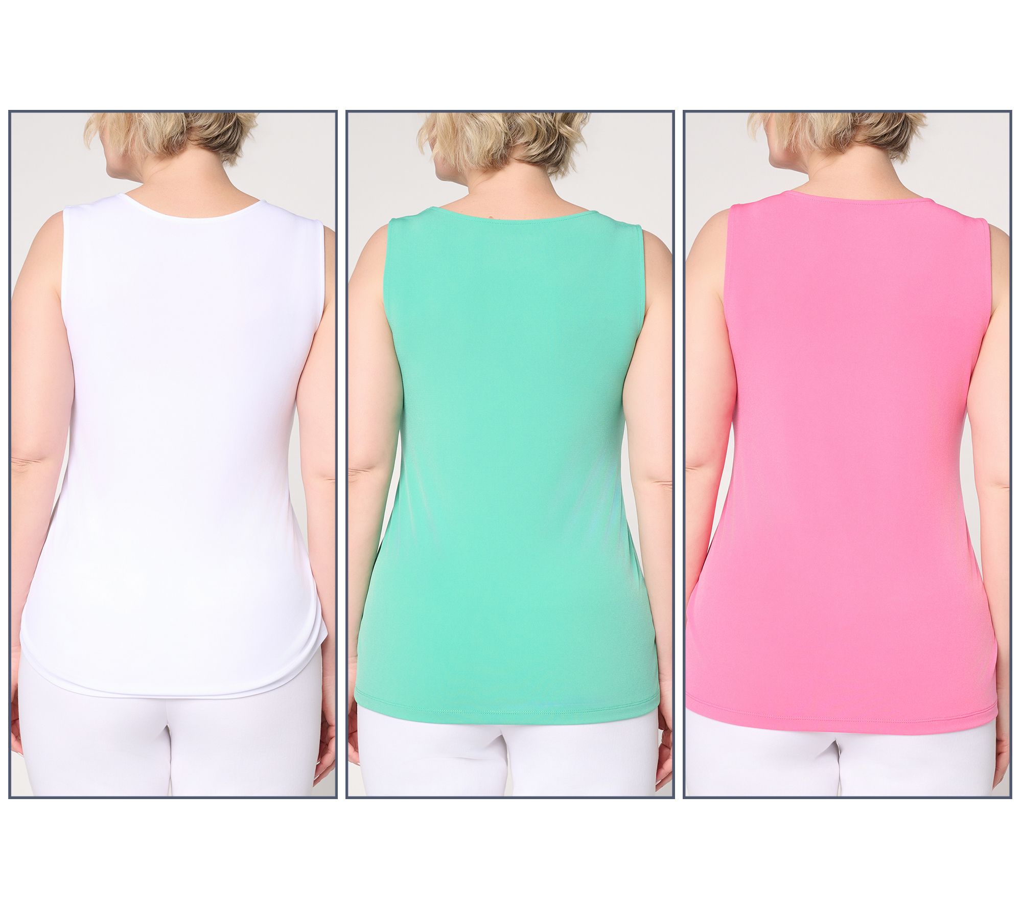 Whether you're layering under a blazer for work or slipping into easy comfort on the weekends, this set of three tank tops keeps your style fresh and versatile. Three distinct necklines give you mix-and-match options for all your plans. From Susan Graver.