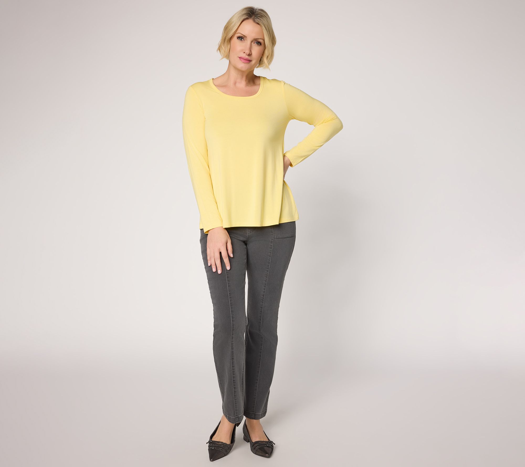 Susan Graver Essentials Rayon Allure Knit Scoop Neck A-Line Top