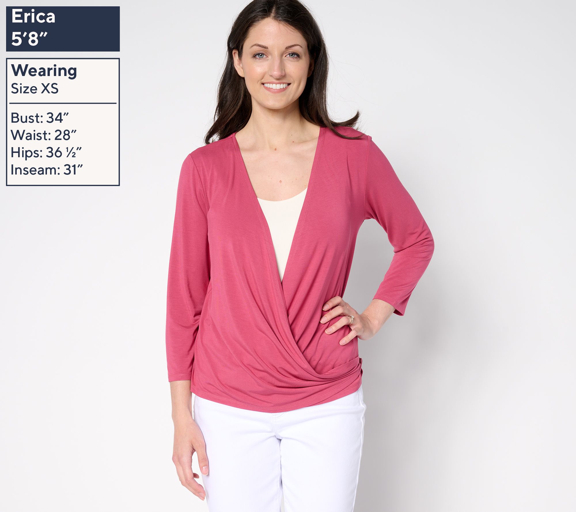 Everyday ease meets endless versatility with this signature shrug. Toss it on for everything from early morning coffee runs to breezy evenings -- the open front can be worn four ways, making it a breeze to change up your look on the fly. Featuring a smooth knit, long sleeves, and soft drape, it slips seamlessly over tanks, tees, or dresses. From Susan Graver.