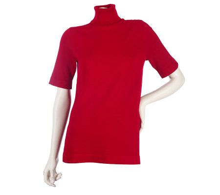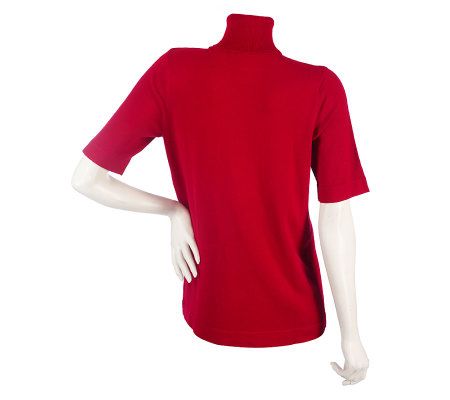 A sweater you won't sweat in. Done with short sleeves, this solid-colored turtleneck gives you the look you love, but offers extra wearing versatility. From Susan Graver.
