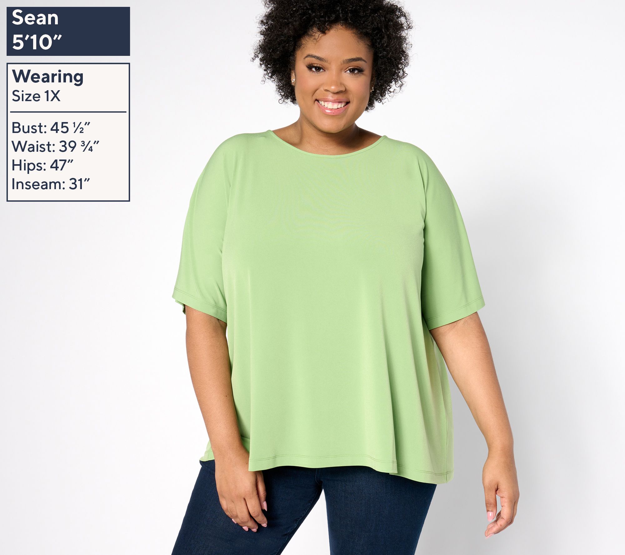 If this year's mantra is elevated yet uncomplicated dressing, start right here. Susan Graver's relaxed dolman sleeve top, crafted in fan-fave Liquid Knit®, is essential to building a wardrobe that's easy, effortless, and offers everyday elegance all at the same time. And there's no bottom it won't instantly bond with. From Susan Graver.