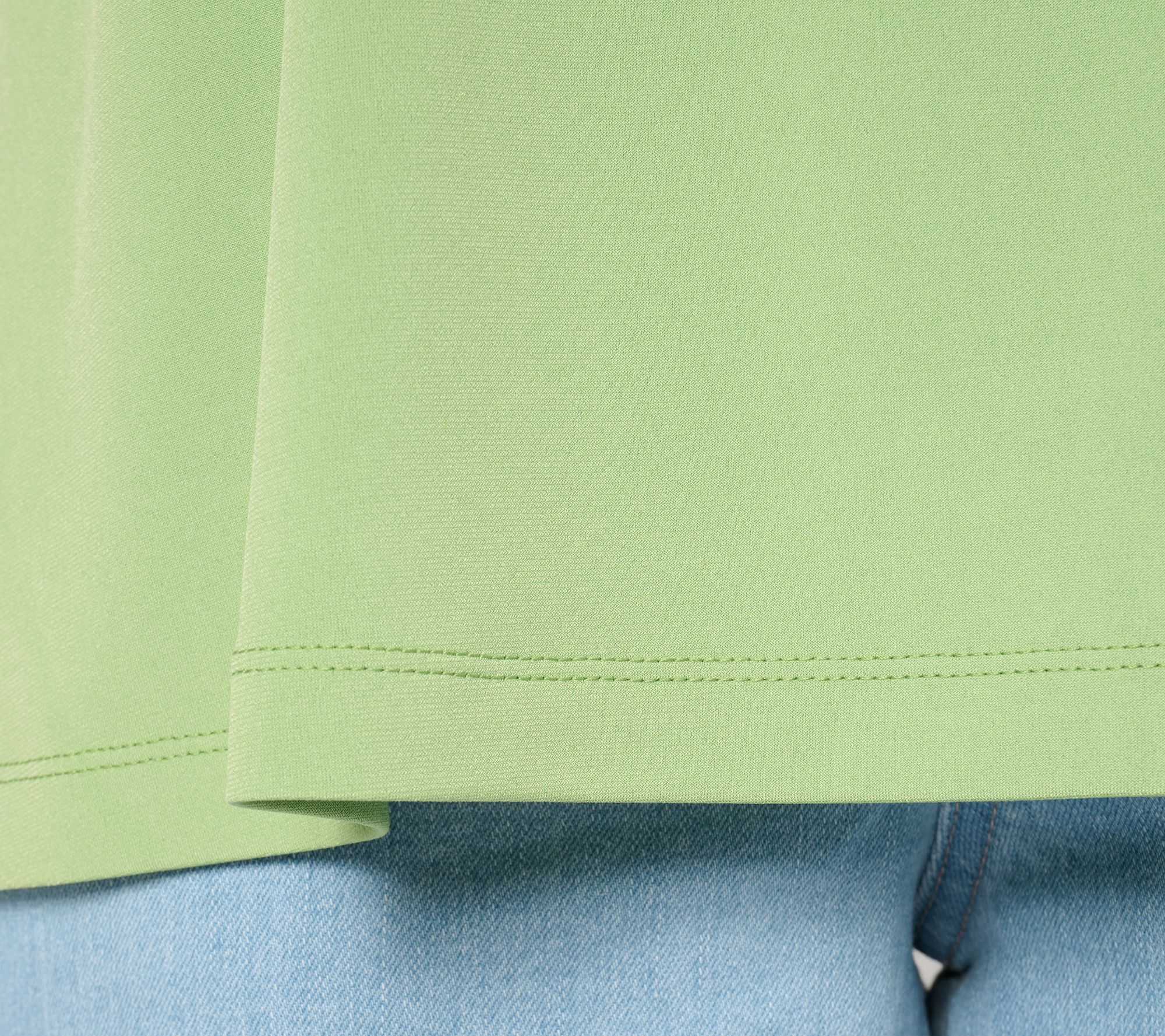 Fabricaton: Liquid Knit®: soft, flattering knit with a smooth feel and fluid drape