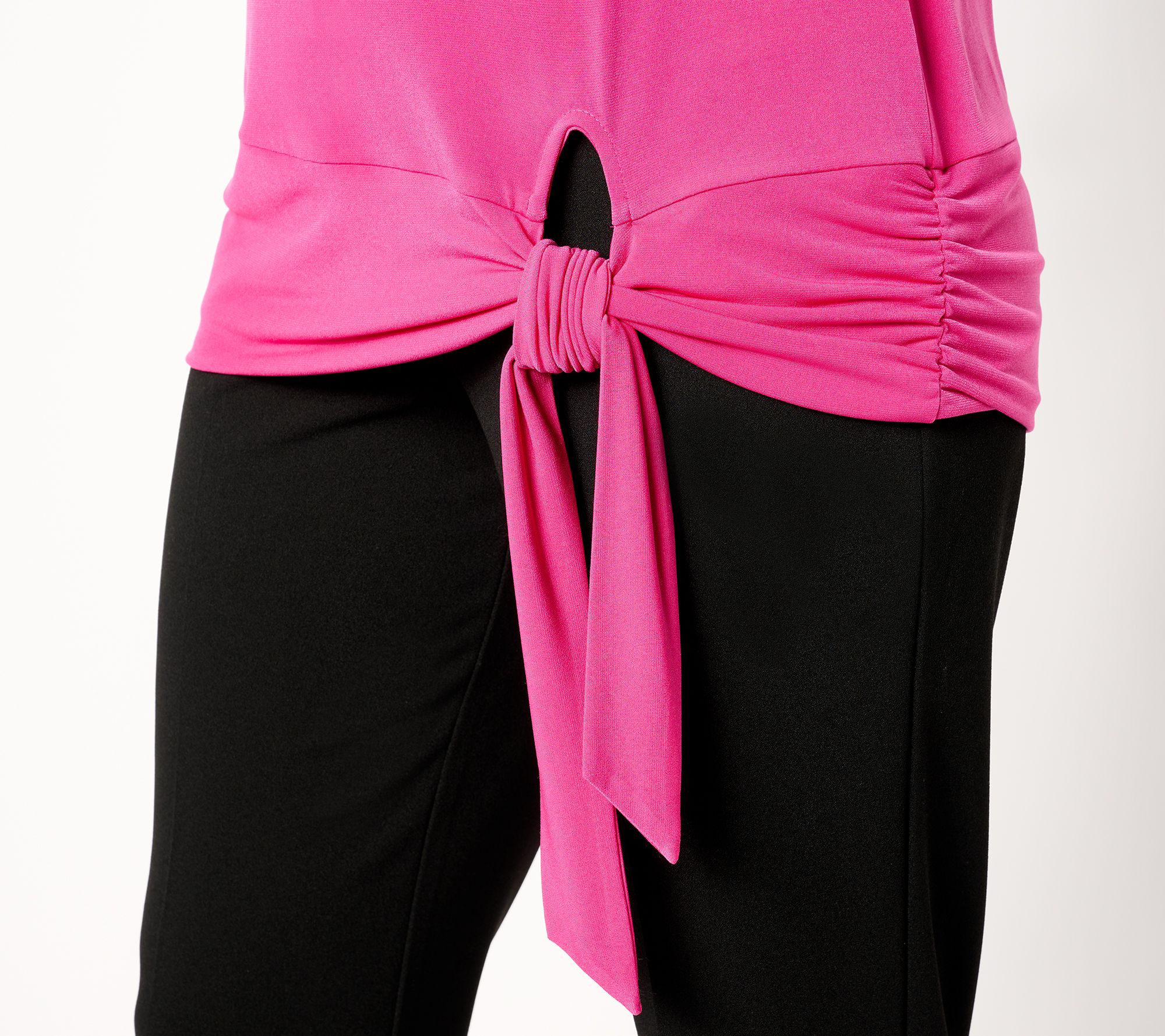 When a little extra coverage comes in the form of a long, lean top with a sophisticated tie band... bingo, we have a wear-on-repeat winner! We're big fans of how beautifully the Liquid Knit® design layers under a blazer or pairs with sleek ponte pants. From Susan Graver.