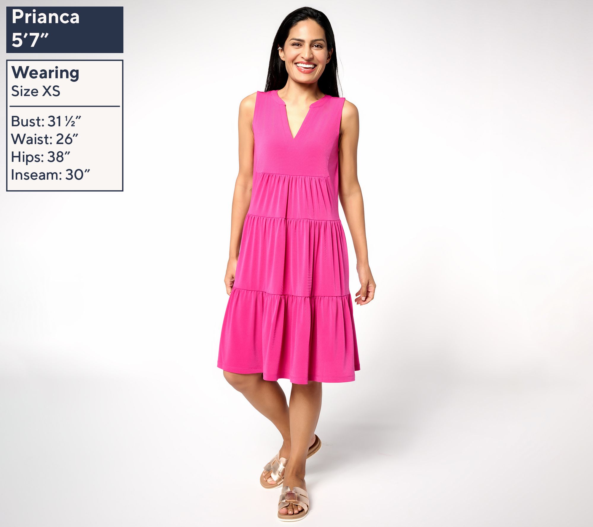 Susan Graver Every Day Peite Liquid Knit Sleeveless Tiered Dress