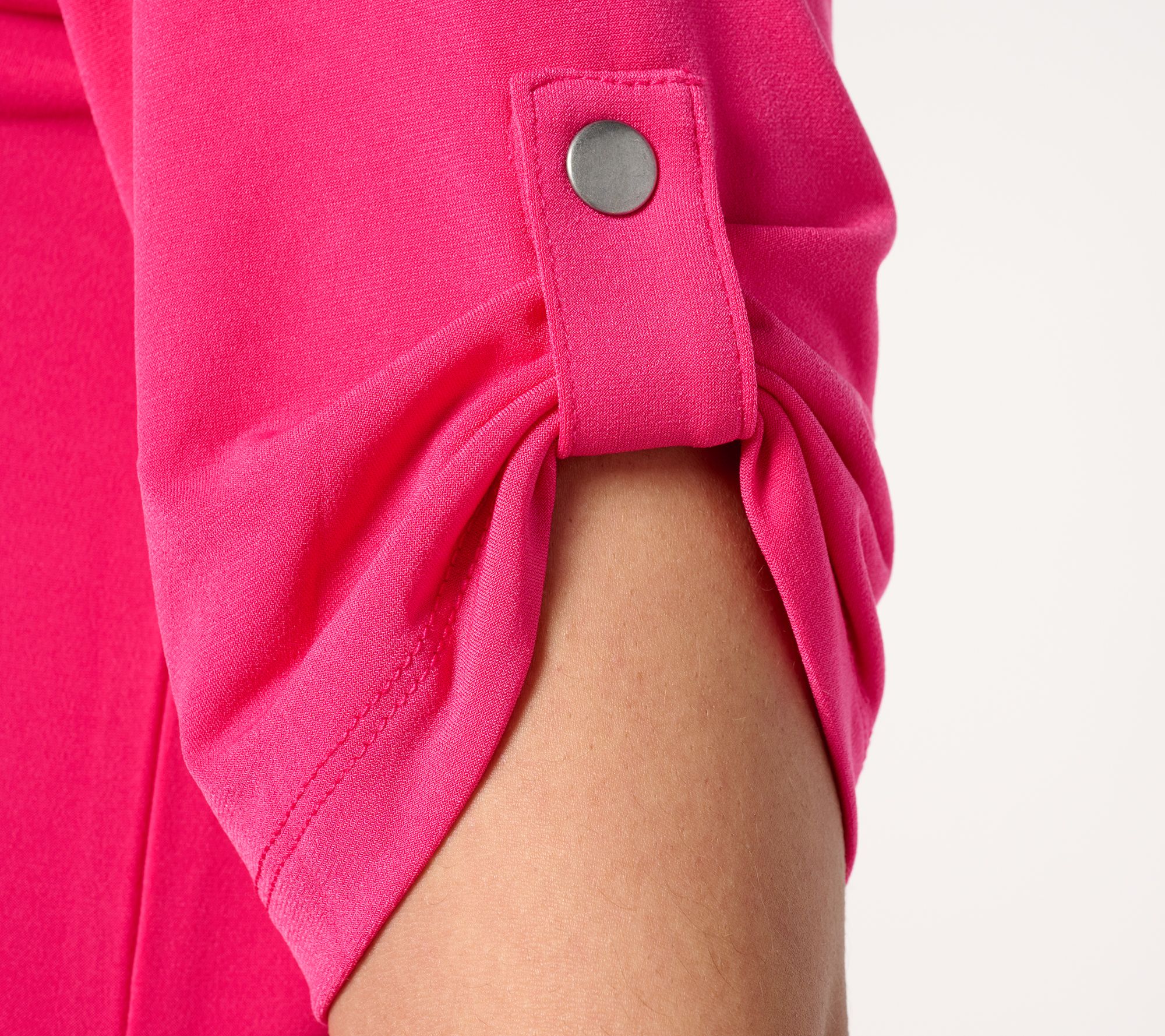 Hello there, gorgeous! Capture the attention of everyone in the room when you're wearing this feel-good, figure-flattering dress (and we absolutely love the roll-tab elbow-length sleeves!). From Susan Graver.