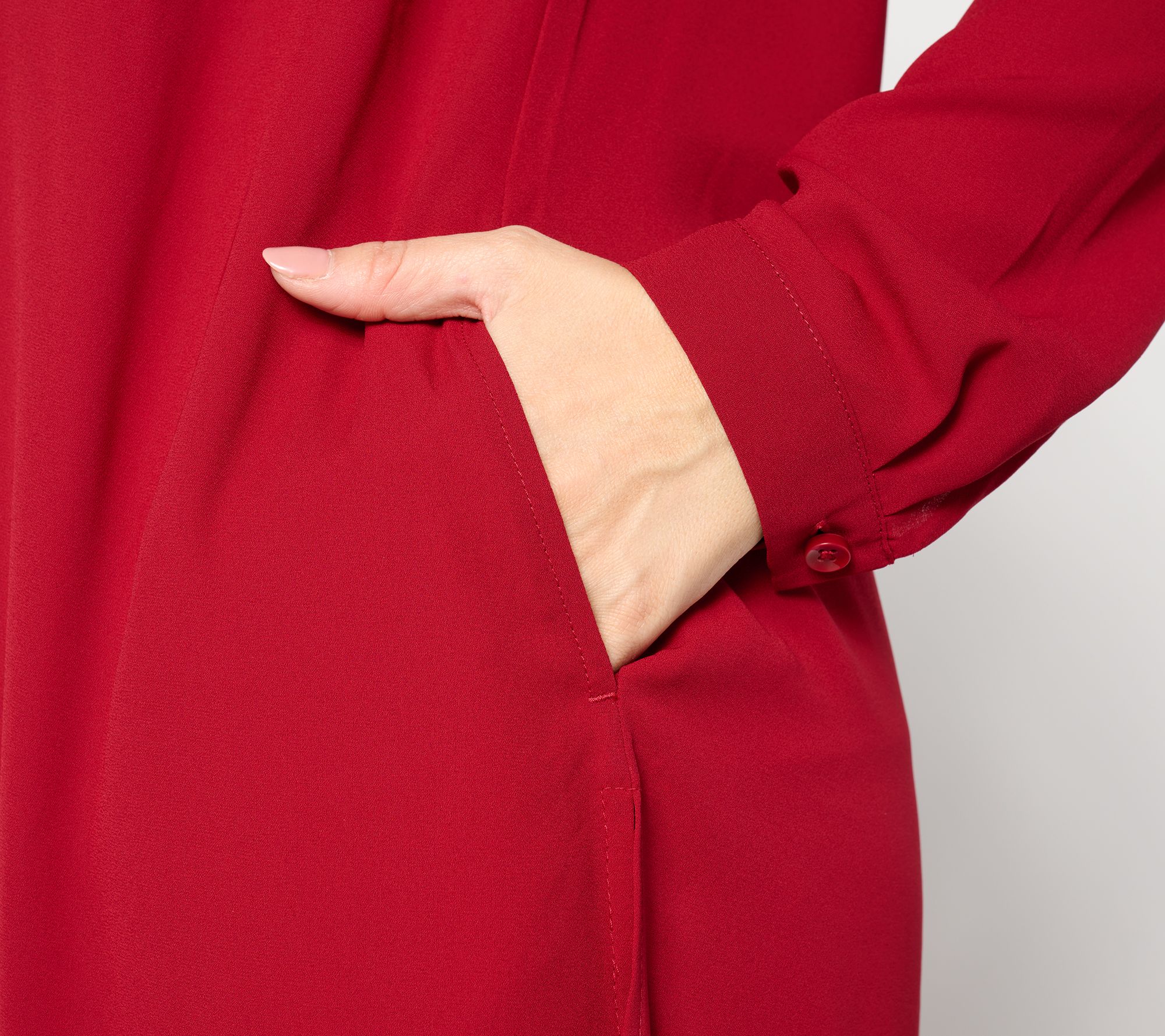 In the mood for an elevated look that still feels effortless? Enter the A-line duster from Susan Graver. Pair with leggings, slim-cut trousers, or wear it unbuttoned and open with a tank and jeans. The lightweight georgette and free-to-move silhouette are exactly the look to make you feel fab. From Susan Graver.