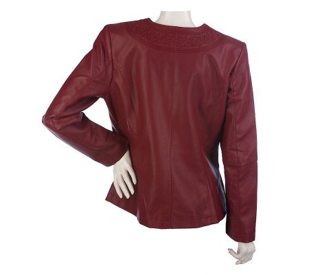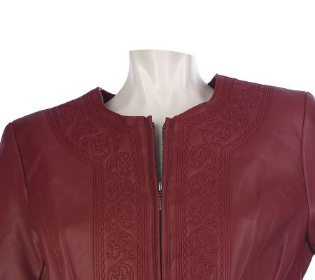 Susan Graver Faux Leather Embroidered Fully Lined Jacket