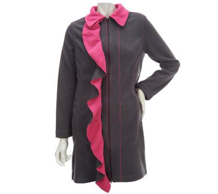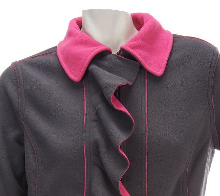 Full of flair. Don this fabulous fleece jacket and confront cooler weather like a true fashionista! Detailed with a flirty ruffle zip front, it's sure to help you stand out from the crowd. From Susan Graver.