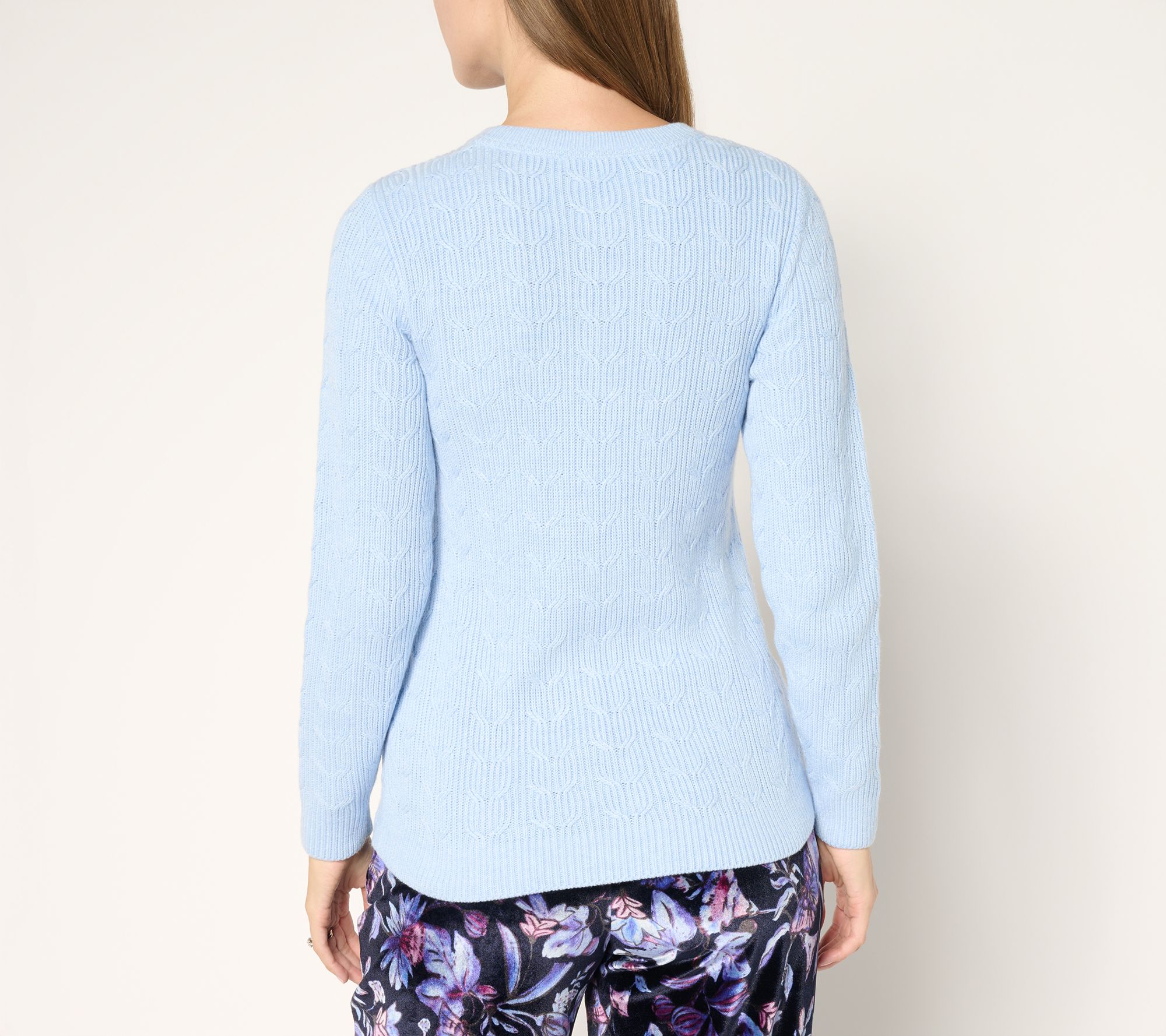 Time to retire your tees? If your closet seems a bit shy in the sweater department, invite this heathered crewneck into your cooler-weather collection. Whether you're commuting or keeping it cozy on weekends, this cable knit design brings trend-fresh texture and welcomed warmth to any look. From Susan Graver.