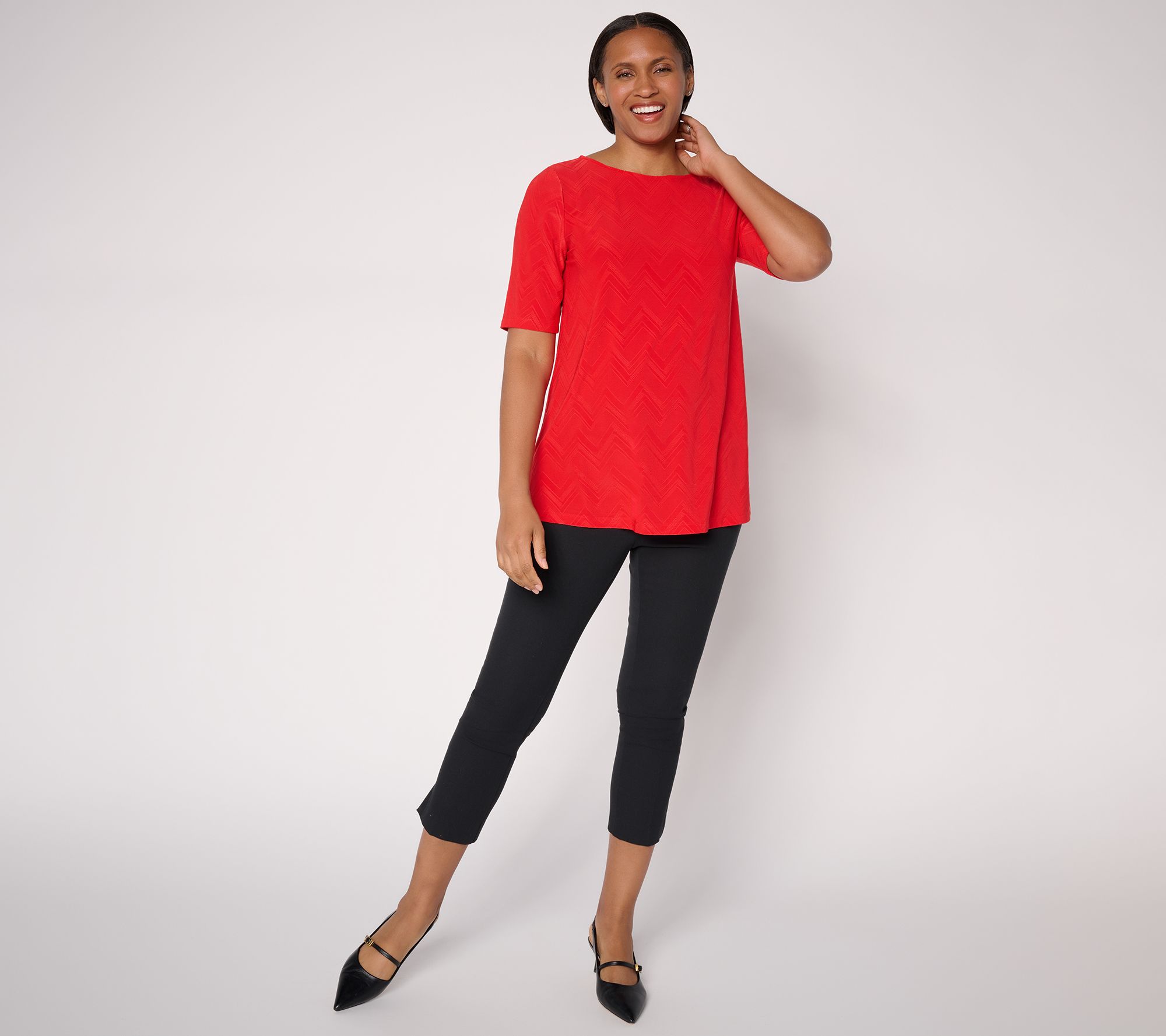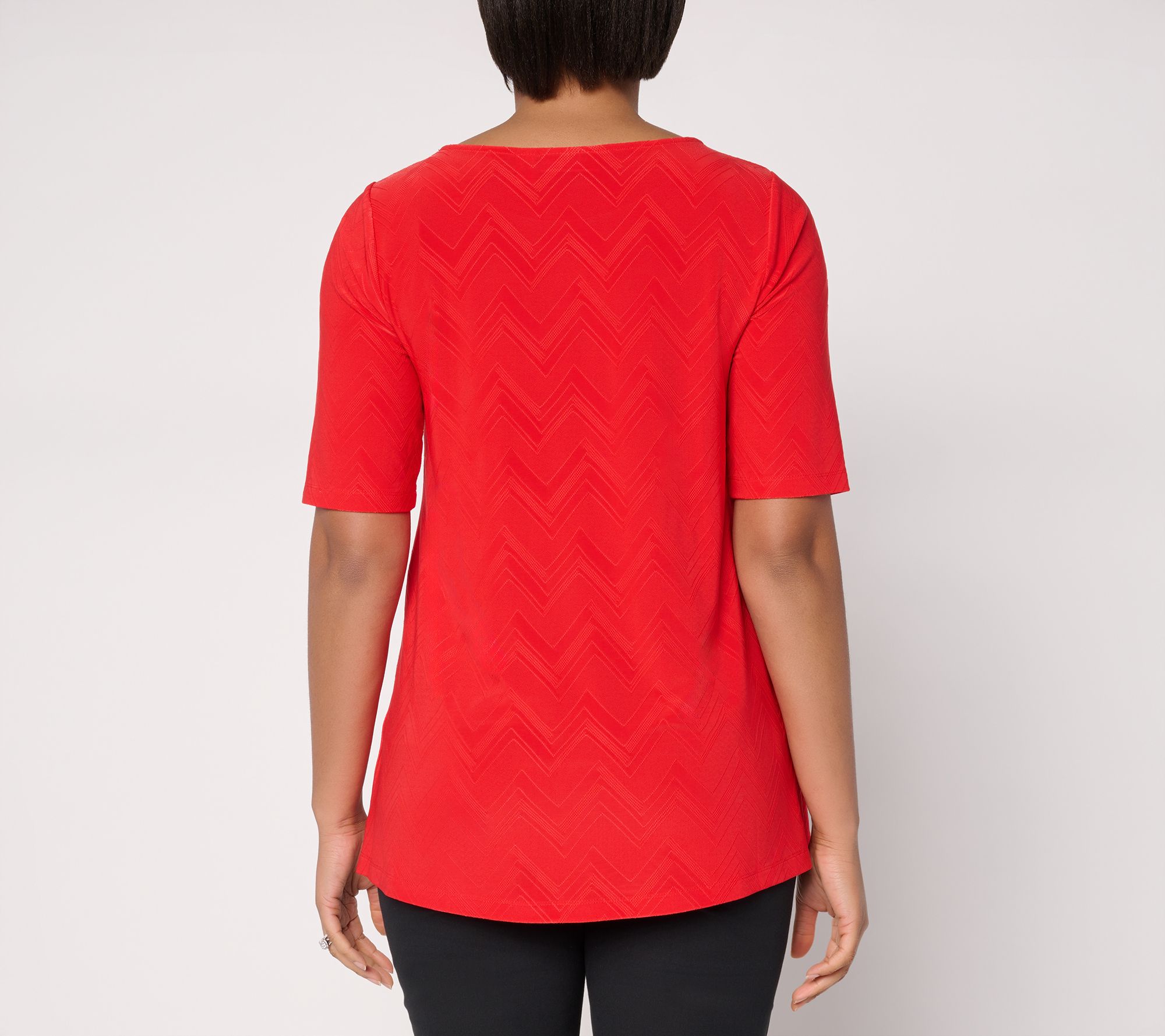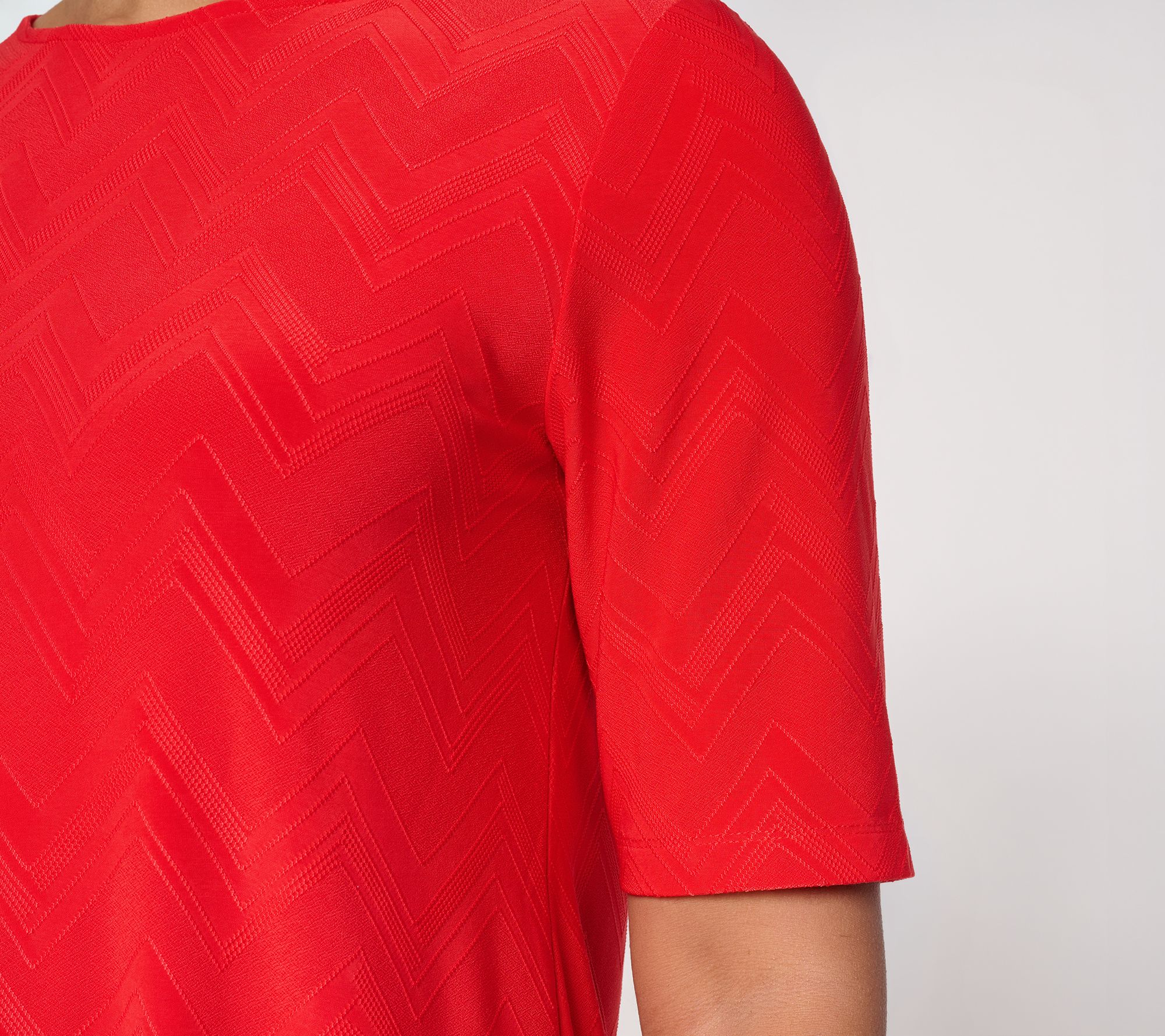 If you love a monochrome look with a little extra oomph, reach for this Liquid Knit® tunic with a fresh jacquard texture. The solid-colored style keeps the vibe sophisticated, whether you pair it with slim-leg pants for the office or leggings for chic weekend adventures. From Susan Graver.